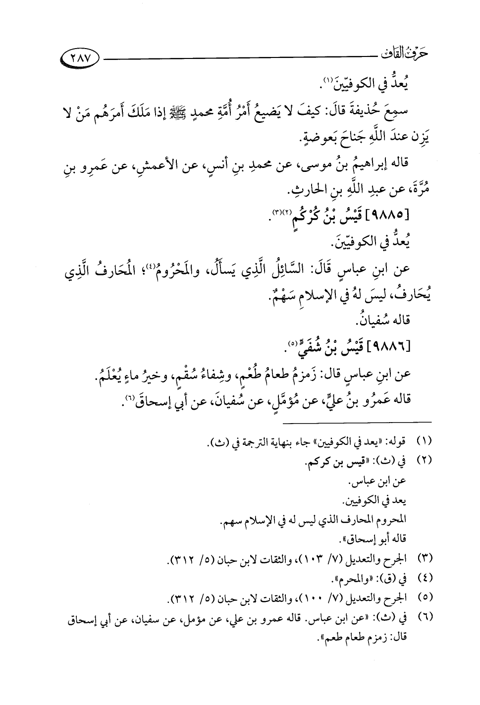 (¬٥) الجرح والتعديل (٧/ ١٠٠)، والثقات لابن حبان (٥/ ٣١٢).