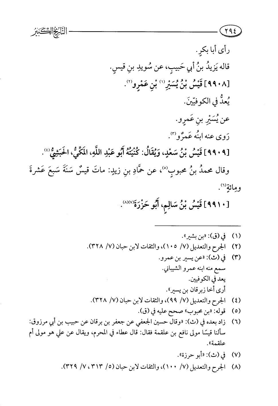 (¬٤) الجرح والتعديل (٧/ ٩٩)، والثقات لابن حبان (٧/ ٣٢٨).