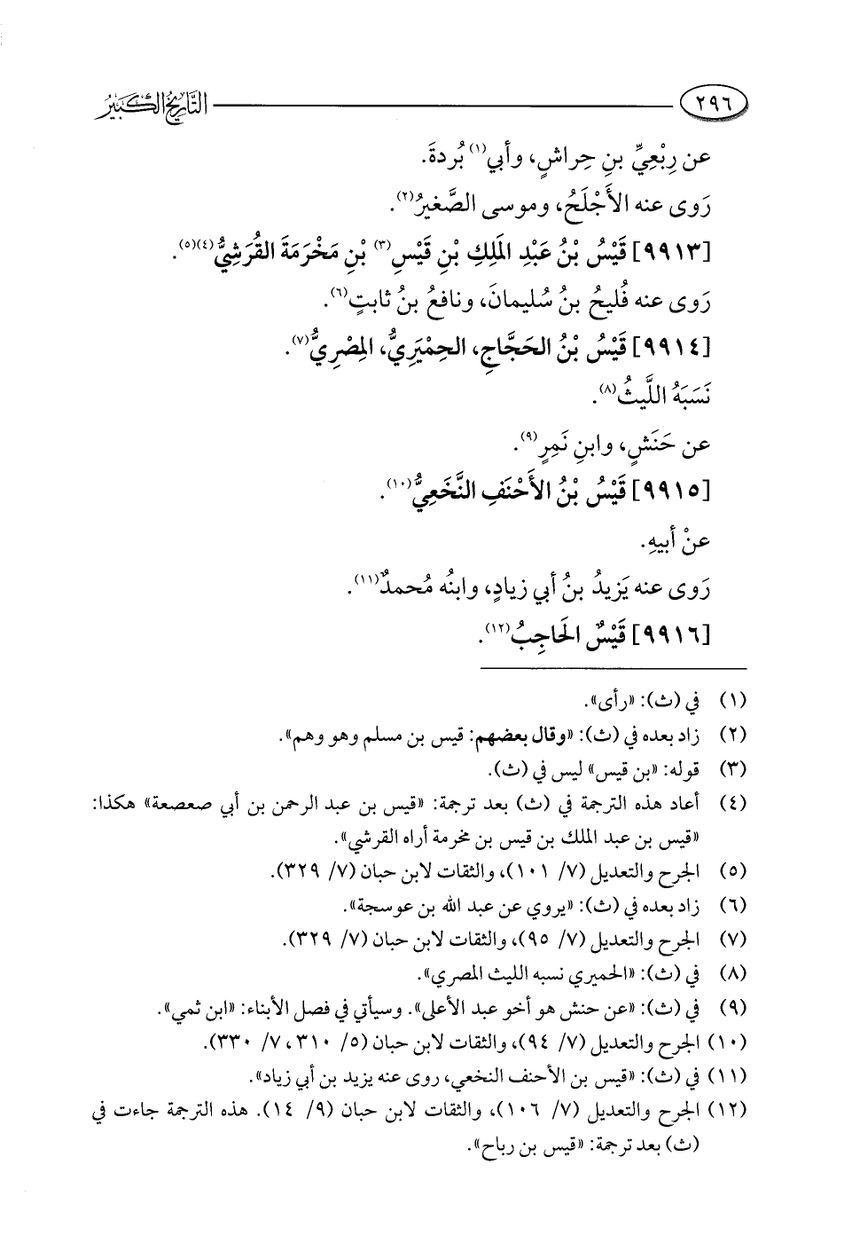 (¬١٢) الجرح والتعديل (٧/ ١٠٦)، والثقات لابن حبان (٩/ ١٤). هذه الترجمة جاءت في (ث) بعد ترجمة: "قيس بن رباح".