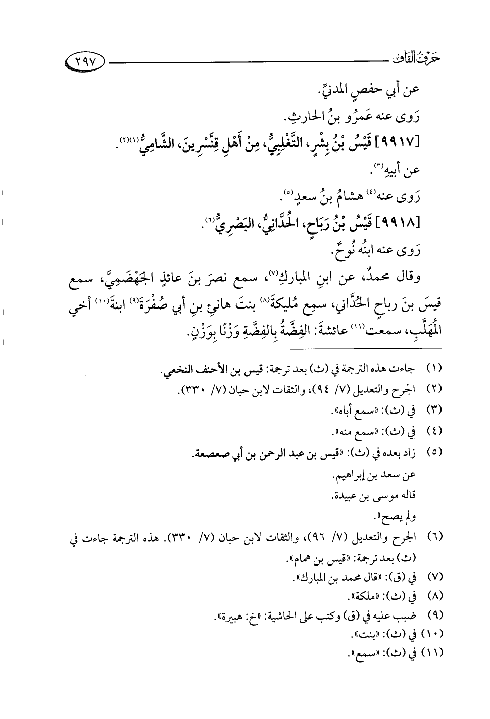 (¬٦) الجرح والتعديل (٧/ ٩٦)، والثقات لابن حبان (٧/ ٣٣٠). هذه الترجمة جاءت في (ث) بعد ترجمة: "قيس بن همام".