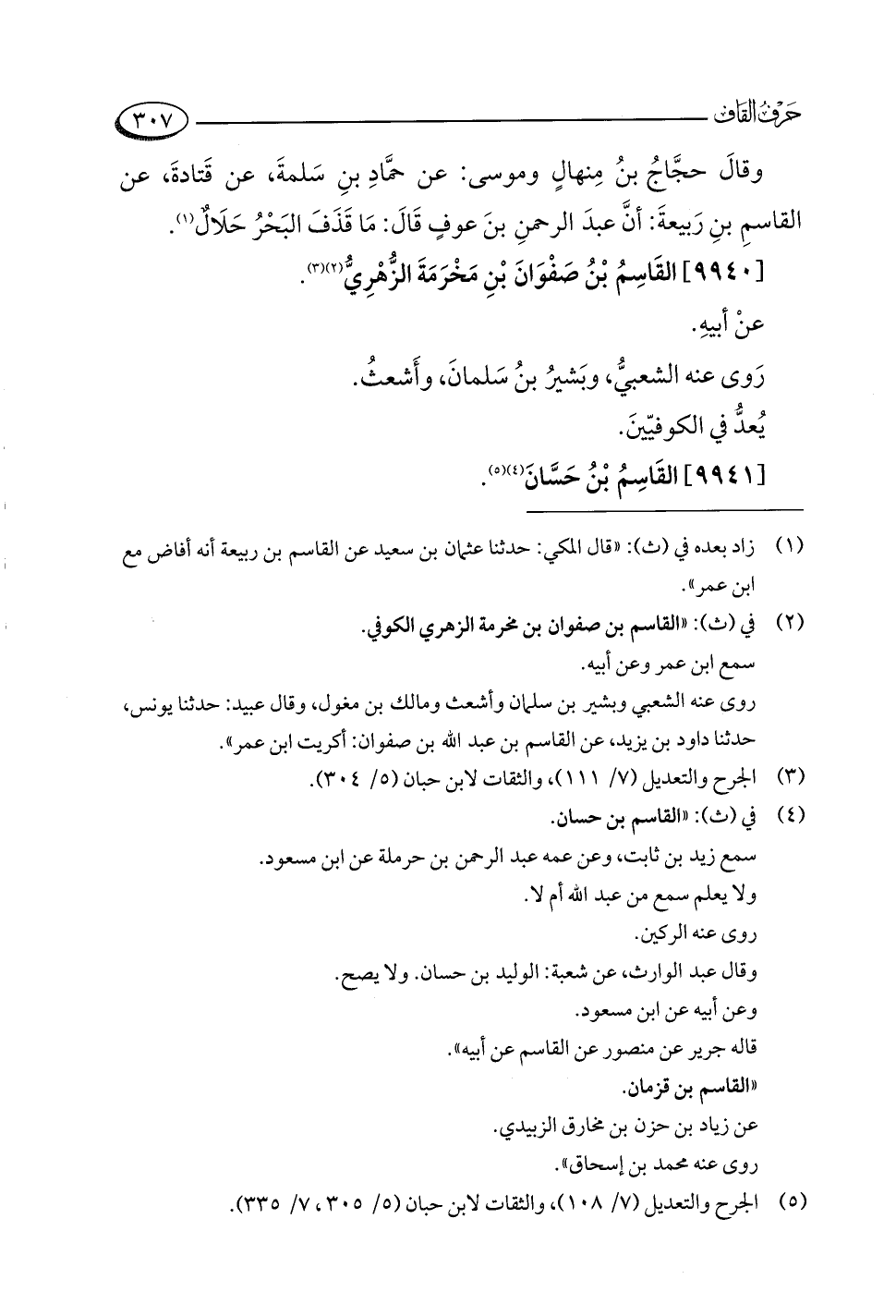 (¬٥) الجرح والتعديل (٧/ ١٠٨)، والثقات لابن حبان (٥/ ٣٠٥، ٧/ ٣٣٥).