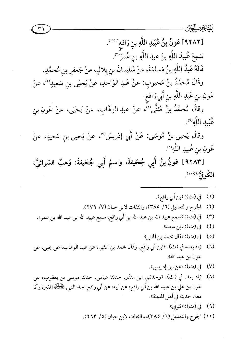 [٩٢٨٣] عَونُ بنُ أَبِي جُحَيفةَ، واسمُ أَبِي جُحَيفةَ: وَهبٌ السّوائيُّ، الكُوفِيُّ (¬٩) (¬١٠).