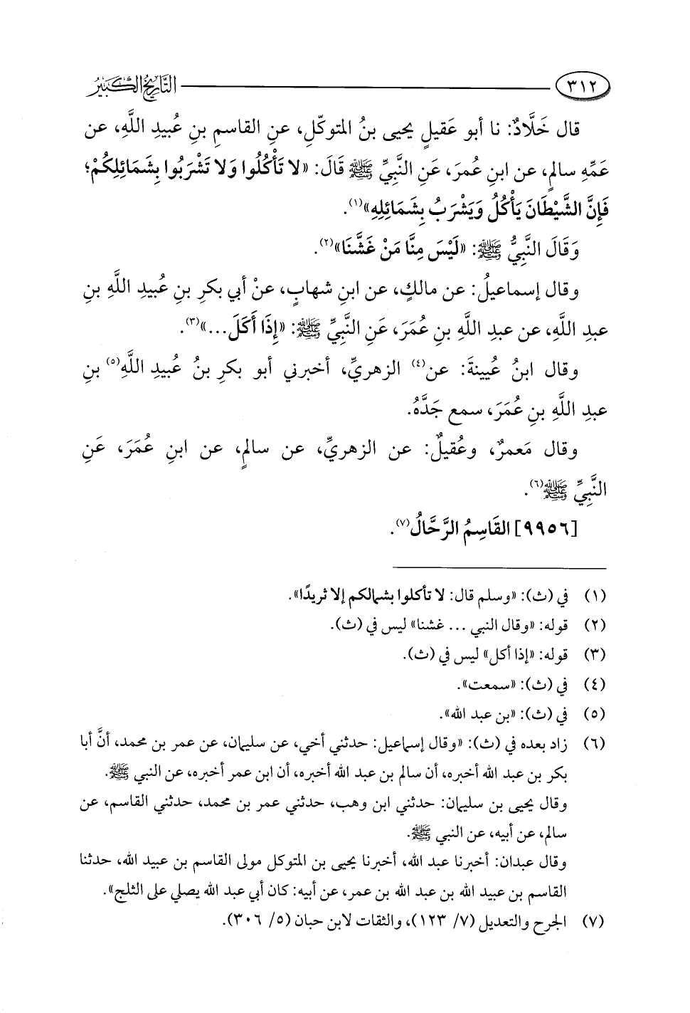 (¬٦) زاد بعده في (ث): "وقال إسماعيل: حدثني أخي، عن سليمان، عن عمر بن محمد، أنَّ أبا بكر بن عبد اللَّه أخبره، أن سالم بن عبد اللَّه أخبره، أن ابن عمر أخبره، عن النبي -صلى اللَّه عليه وسلم-.