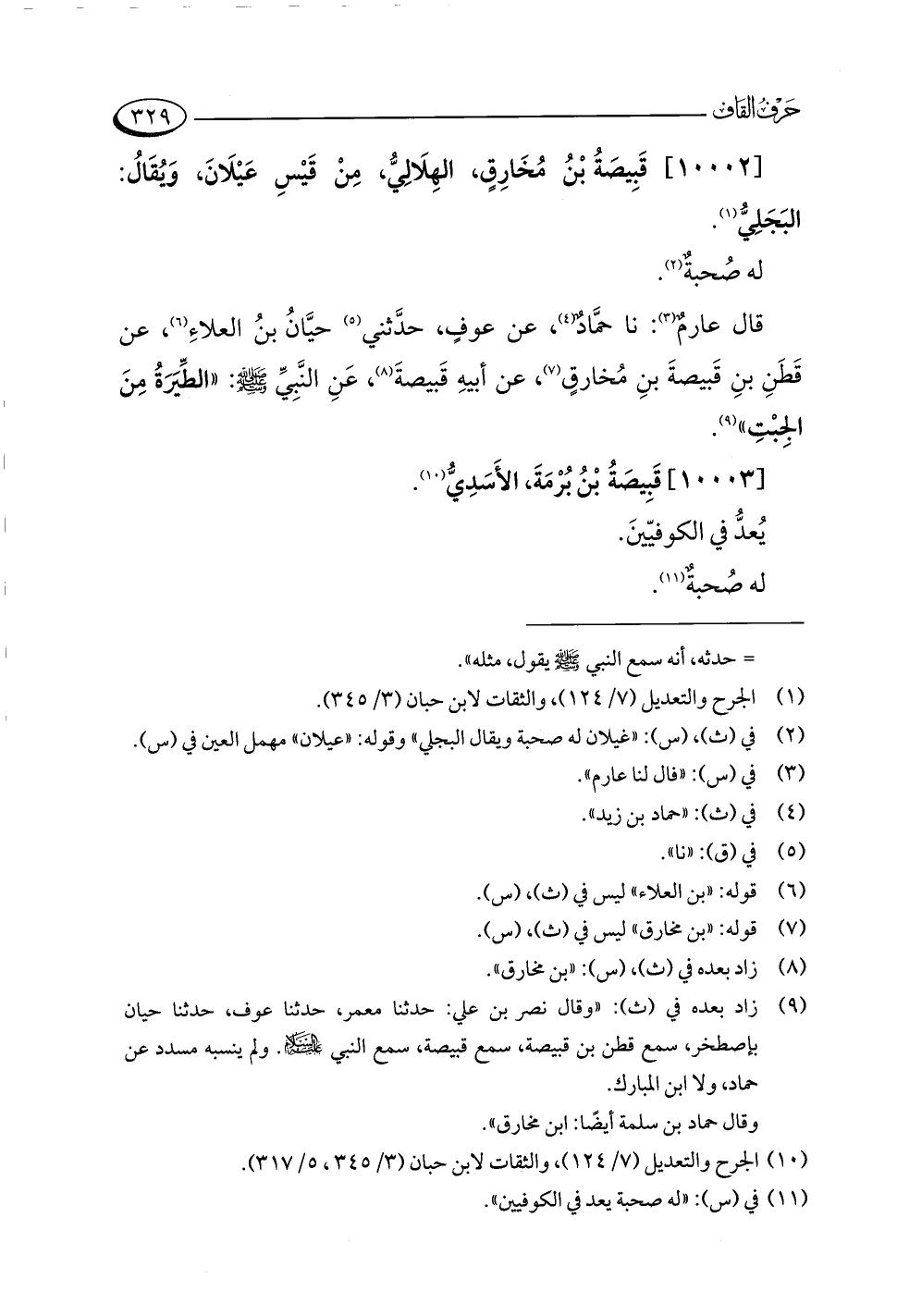 (¬٩) زاد بعده في (ث): "وقال نصر بن علي: حدثنا معمر، حدثنا عوف، حدثنا حيان بإصطخر، سمع قطن بن قبيصة، سمع قبيصة، سمع النبي عليه السلام. ولم ينسبه مسدد عن حماد، ولا ابن المبارك.