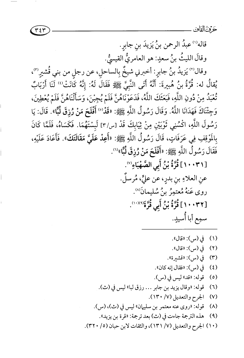 (¬١٠) الجرح والتعديل (٧/ ١٣١)، والثقات لابن حبان (٥/ ٣٢٠).