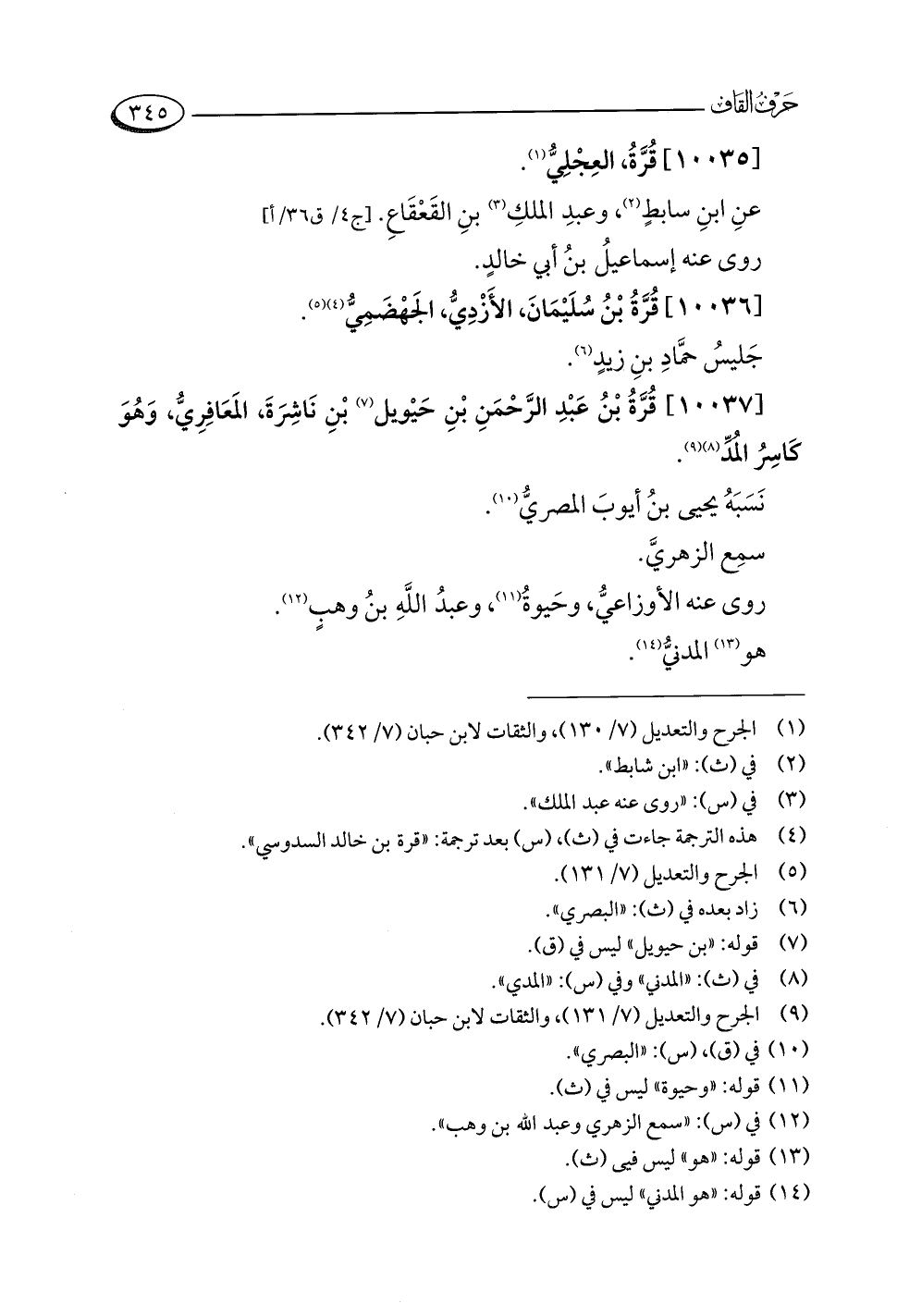 (¬١) الجرح والتعديل (٧/ ١٣٥)، والثقات لابن حبان (٧/ ٣٤٢).