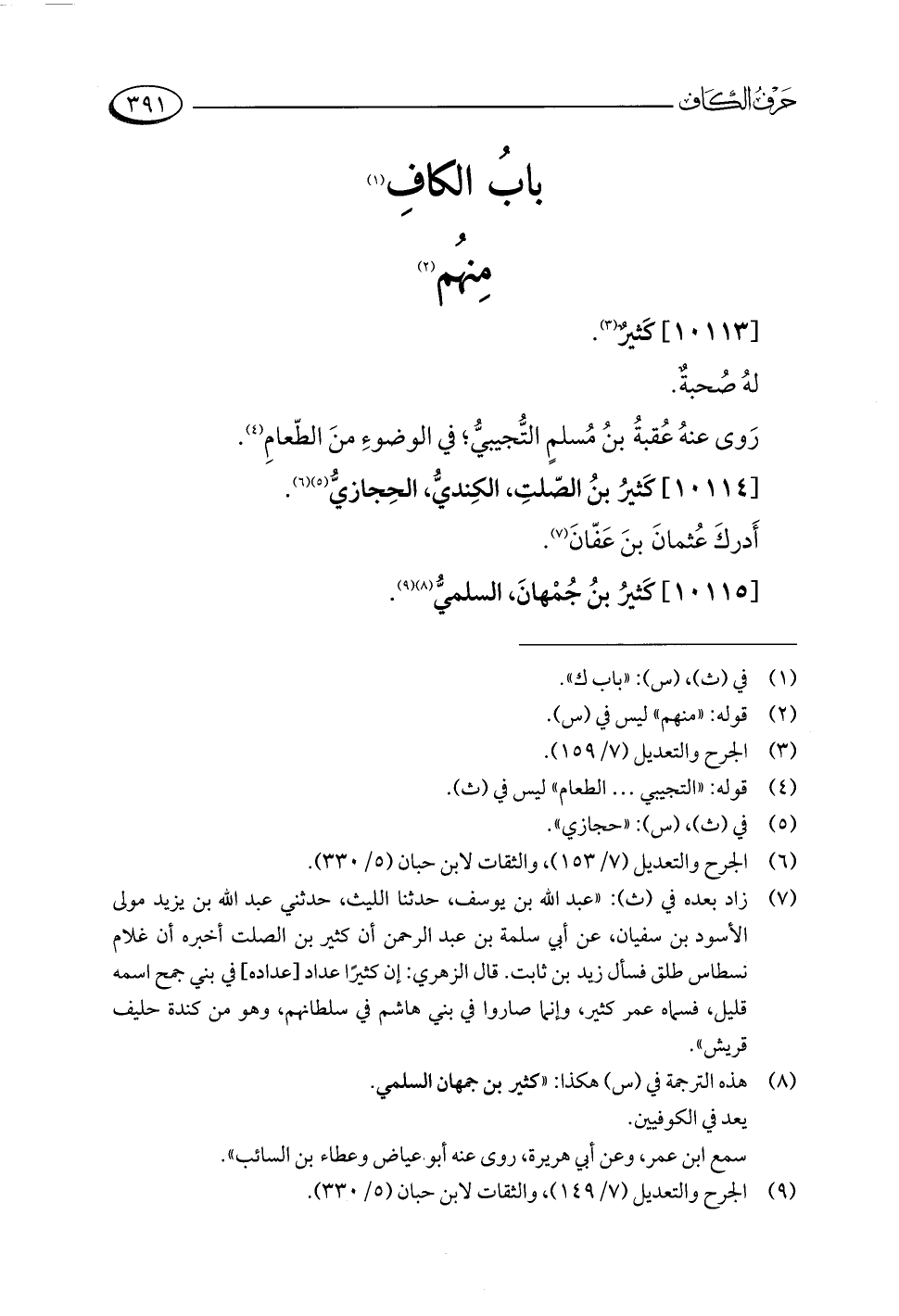 (¬٨) هذه الترجمة في (س) هكذا: "كثير بن جمهان السلمي.