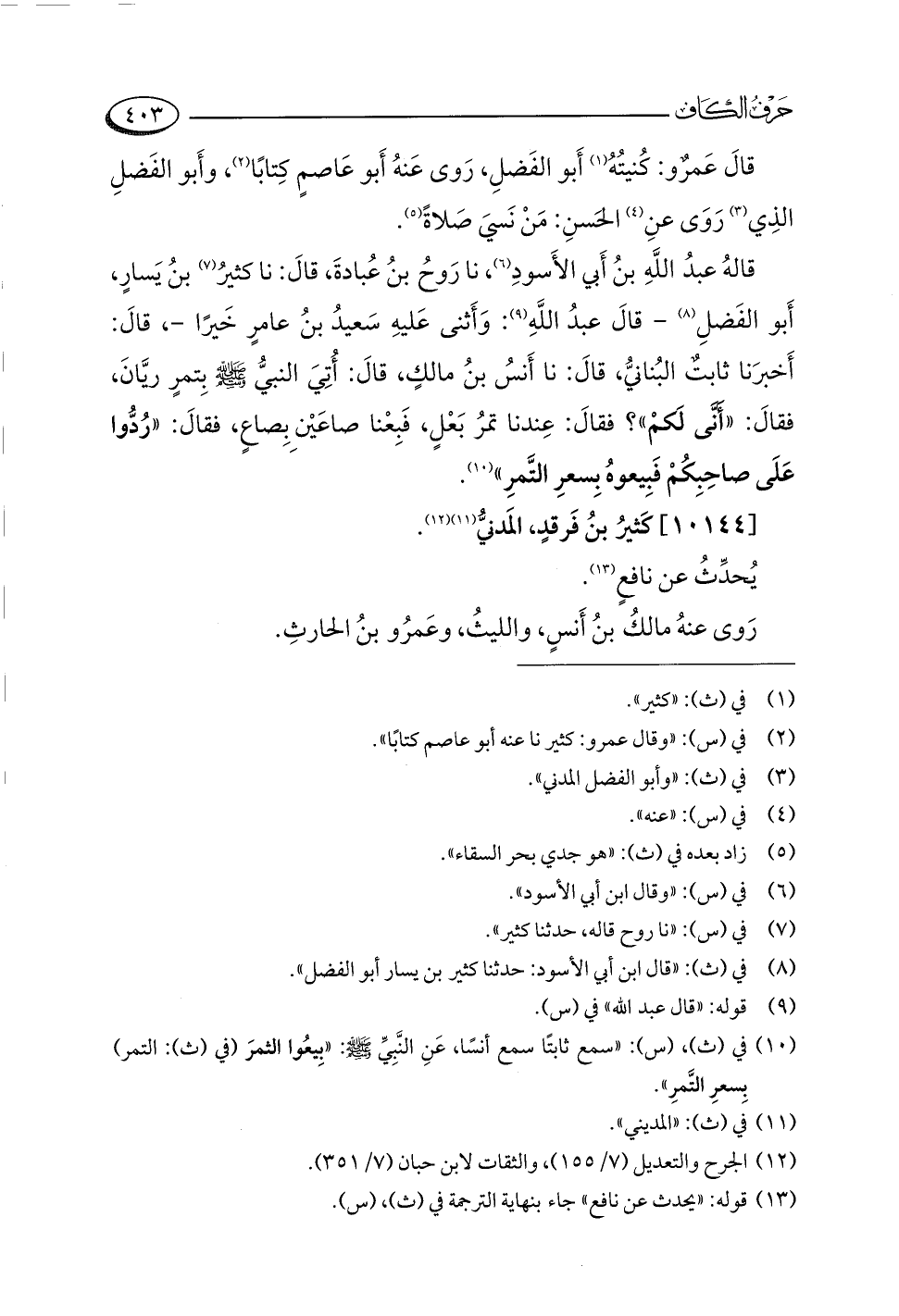 (¬١٣) قوله: "يحدث عن نافع" جاء بنهاية الترجمة في (ث)، (س).