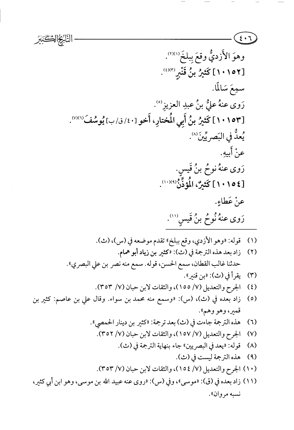 (¬٦) هذه الترجمة جاءت في (ث) بعد ترجمة: "كثير بن دينار الحمصي".