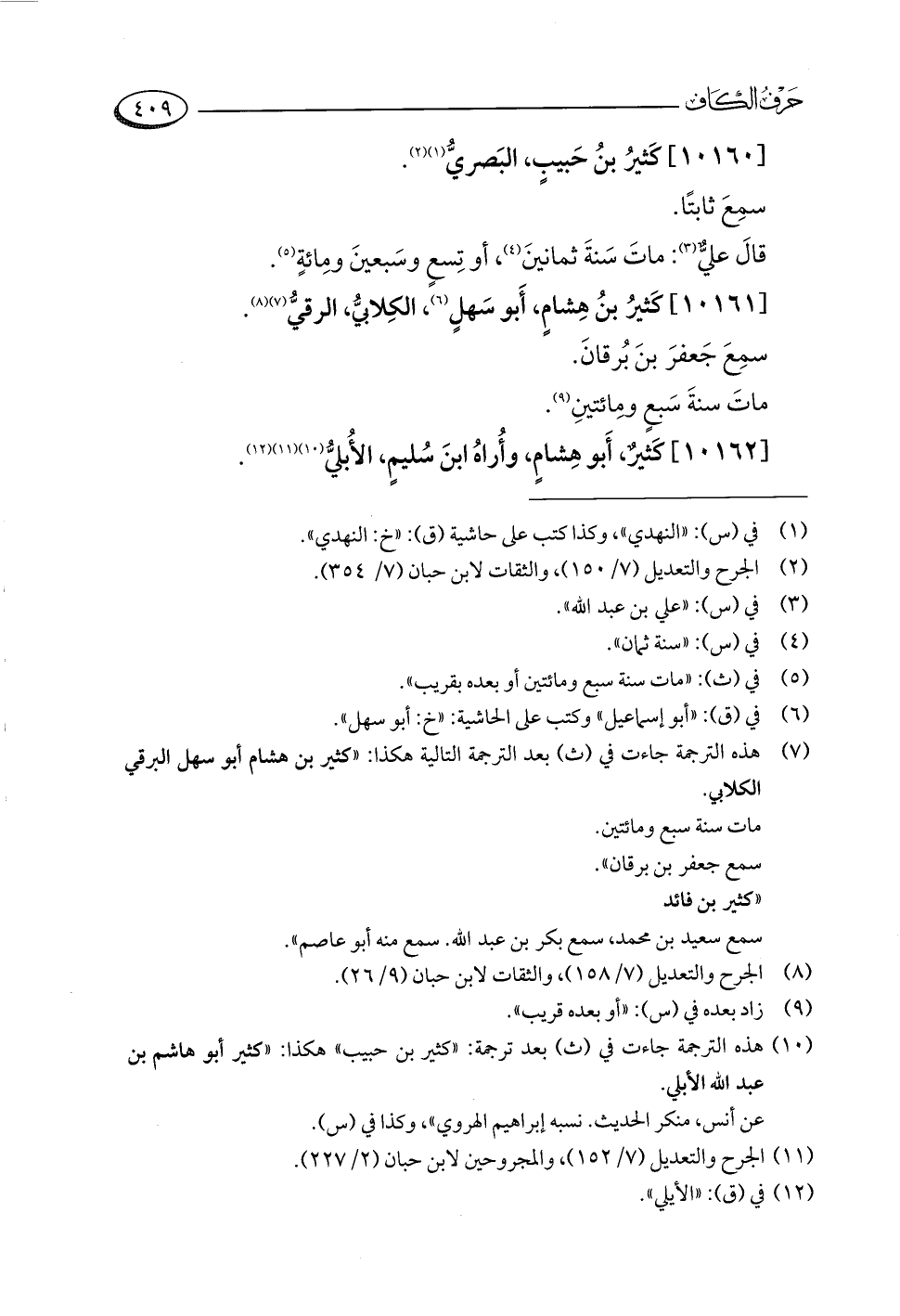 (¬٧) هذه الترجمة جاءت في (ث) بعد الترجمة التالية هكذا: "كثير بن هشام أبو سهل البرقي الكلابي.