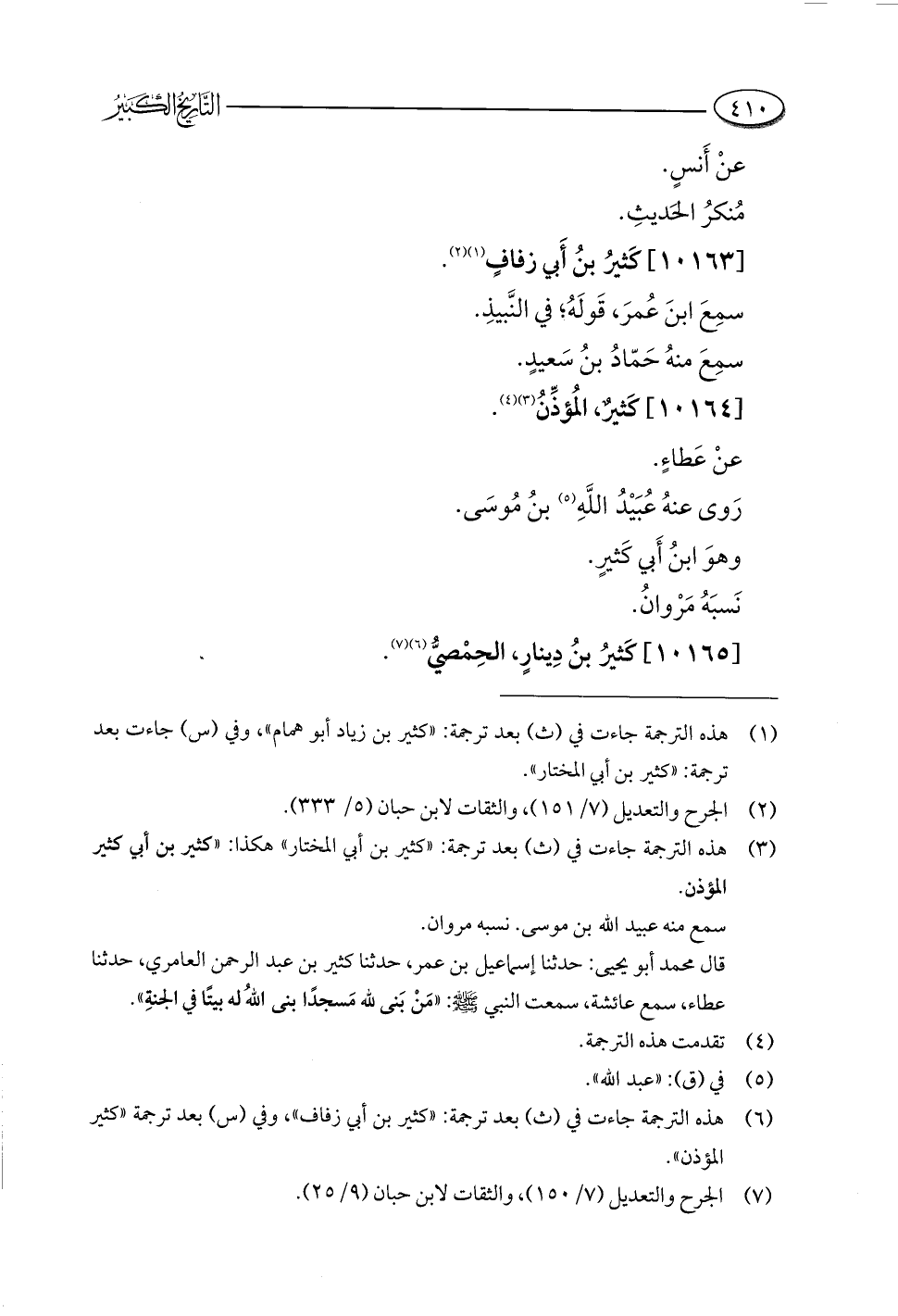 (¬٦) هذه الترجمة جاءت في (ث) بعد ترجمة: "كثير بن أبي زفاف"، وفي (س) بعد ترجمة "كثير المؤذن".