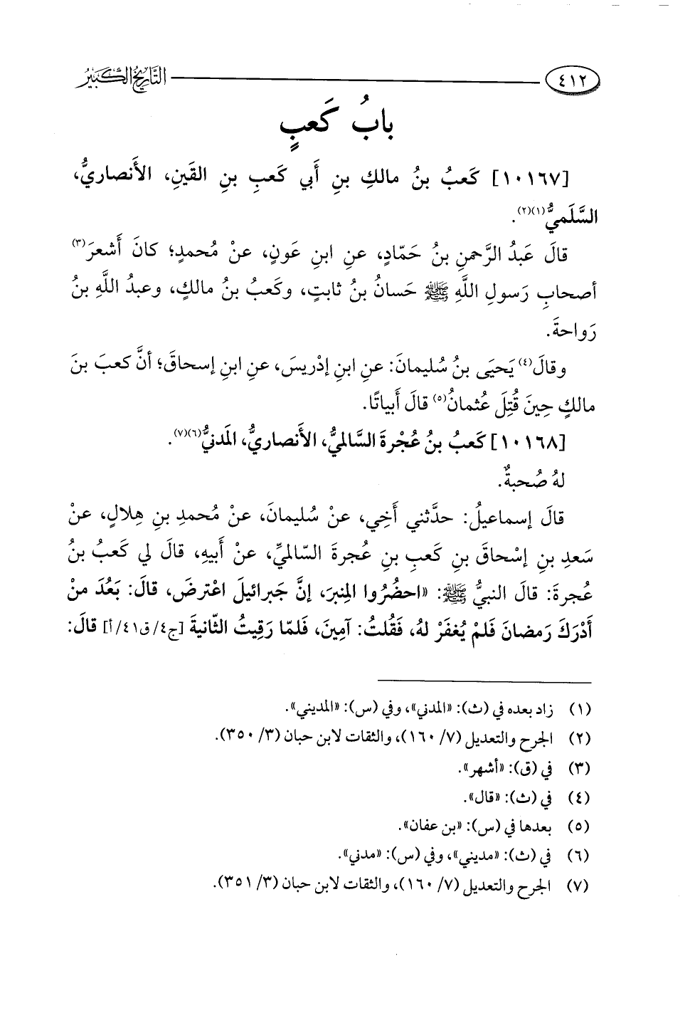 (¬٧) الجرح والتعديل (٧/ ١٦٠)، والثقات لابن حبان (٣/ ٣٥١).