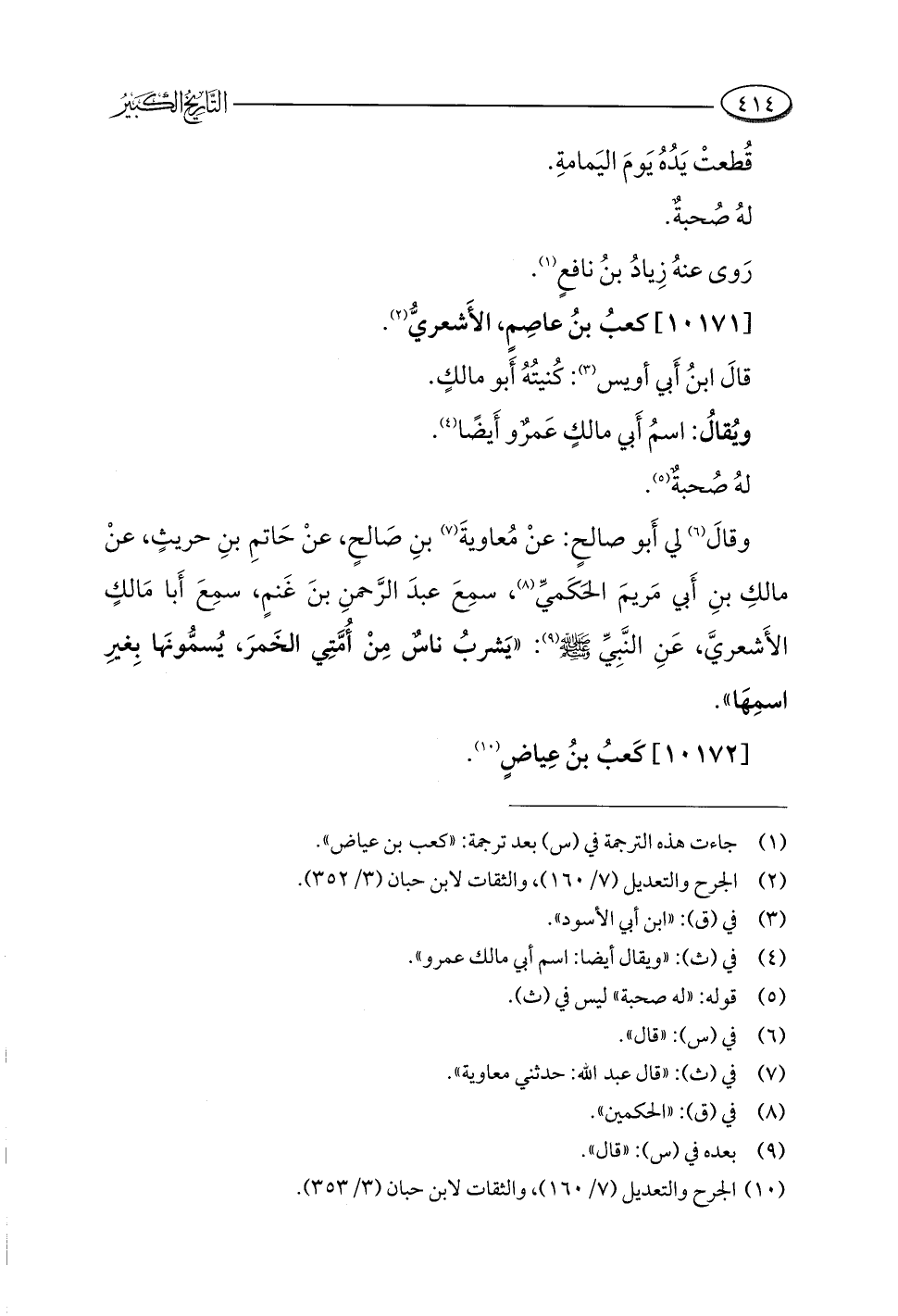(¬١) جاءت هذه الترجمة في (س) بعد ترجمة: "كعب بن عياض".