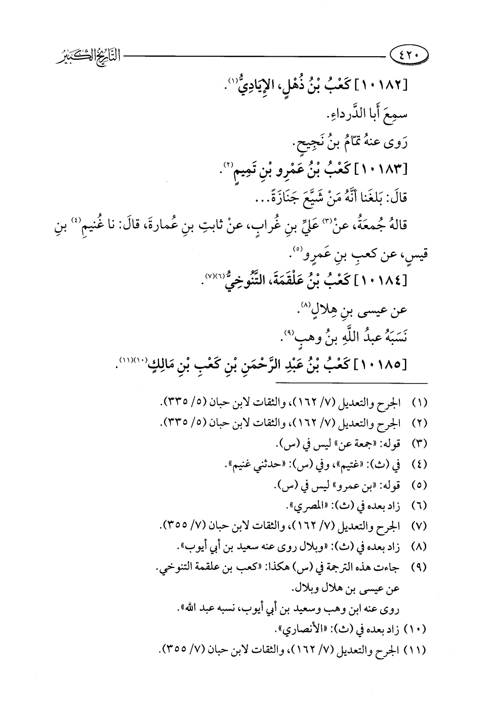 (¬١١) الجرح والتعديل (٧/ ١٦٢)، والثقات لابن حبان (٧/ ٣٥٥).