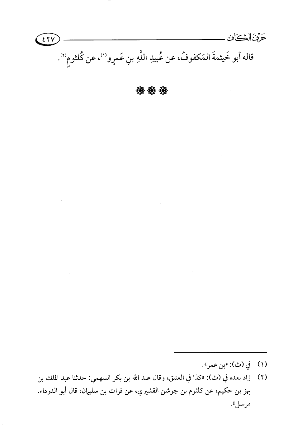 قاله أبو خَيثمةَ المَكفوفُ، عن عُبيدِ اللَّهِ بنِ عَمرٍو (¬١)، عن كُلثومٍ (¬٢).