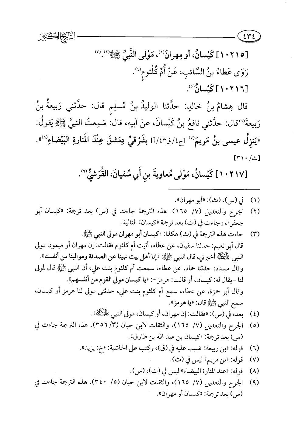 (¬٣) جاءت هذه الترجمة في (ث) هكذا: "كيسان أبو مهران مولى النبي -صلى اللَّه عليه وسلم-.
