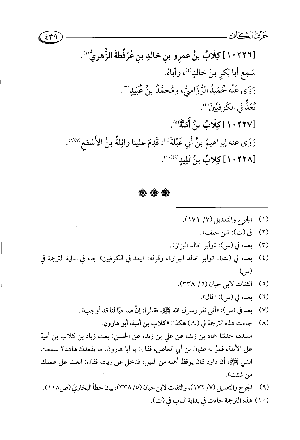 (¬٨) جاءت هذه الترجمة في (ث) هكذا: "كلاب بن أمية، أبو هارون.