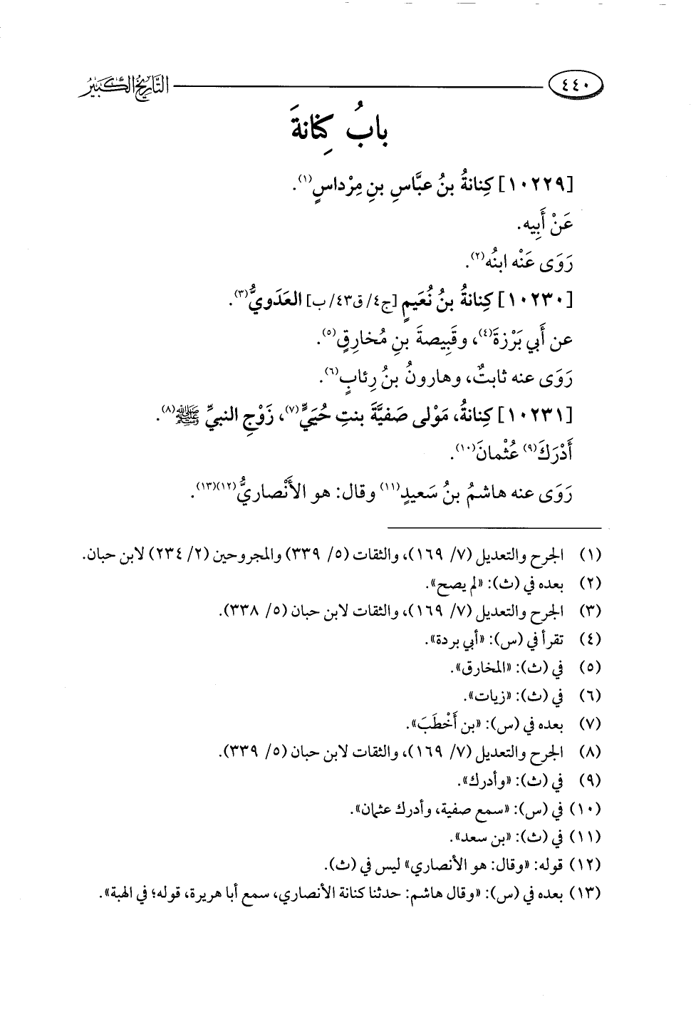 [١٠٢٣١] كِنانةُ، مَوْلى صَفيَّةَ بنتِ حُيَيٍّ (¬٧)، زَوْجِ النبيِّ -صلى اللَّه عليه وسلم- (¬٨).