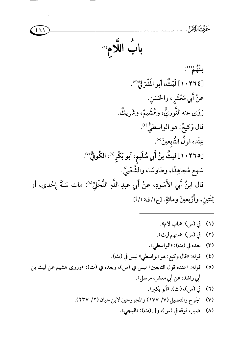 [١٠٢٦٥] ليثُ بنُ أَبي سُلَيمٍ، أبو بَكْرٍ (¬٦)، الكُوفِيُّ (¬٧).