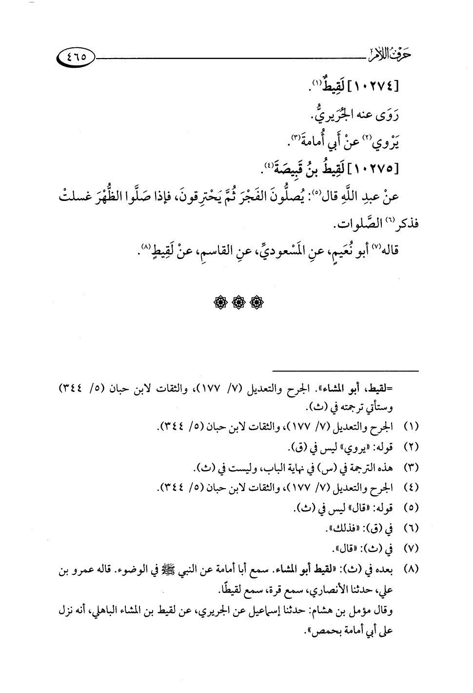 = لقيط، أبو المشاء". الجرح والتعديل (٧/ ١٧٧)، والثقات لابن حبان (٥/ ٣٤٤) وستأتي ترجمته في (ث).