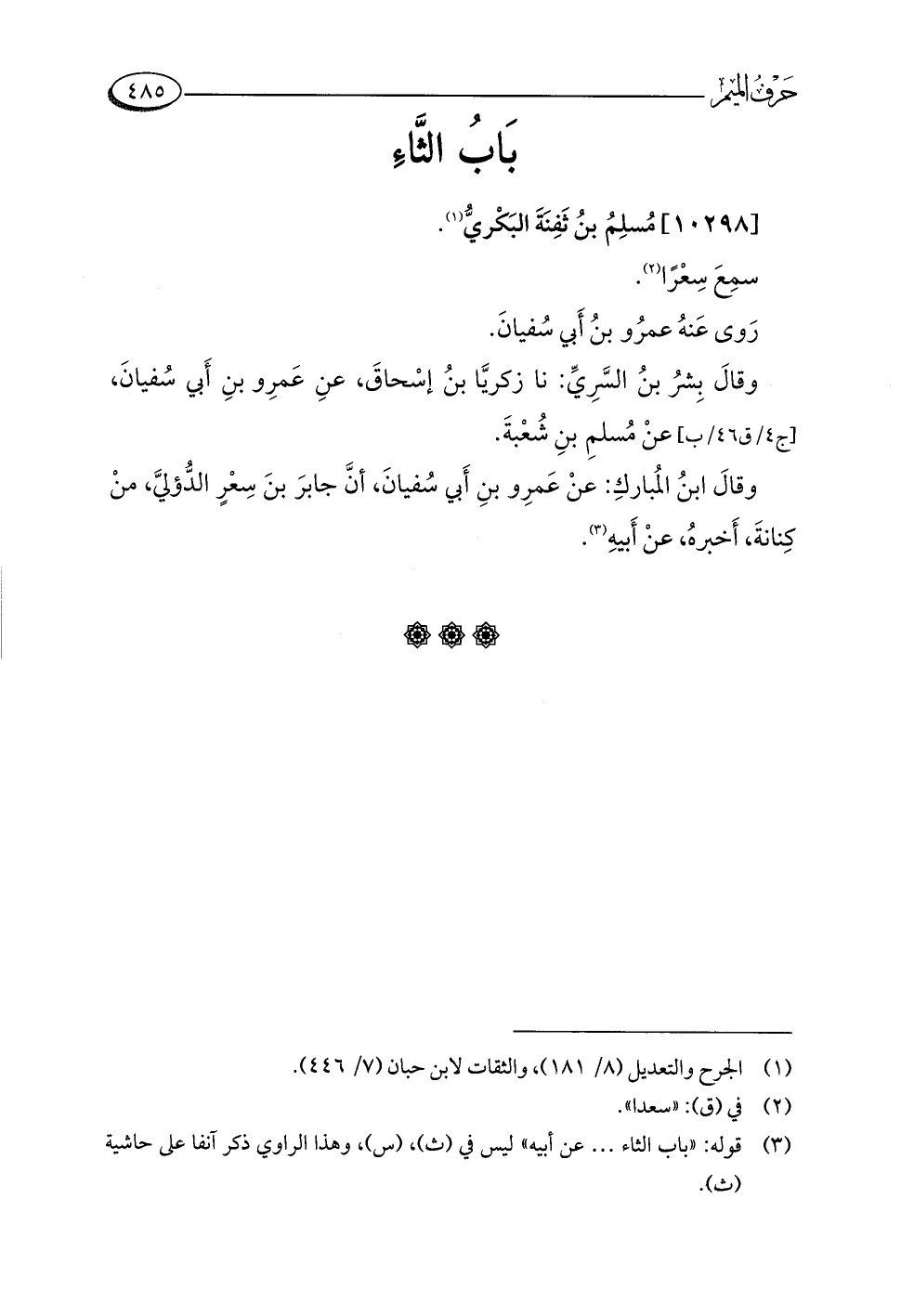 (¬٣) قوله: "باب الثاء. . . عن أبيه" ليس في (ث)، (س)، وهذا الراوي ذكر آنفا على حاشية (ث).