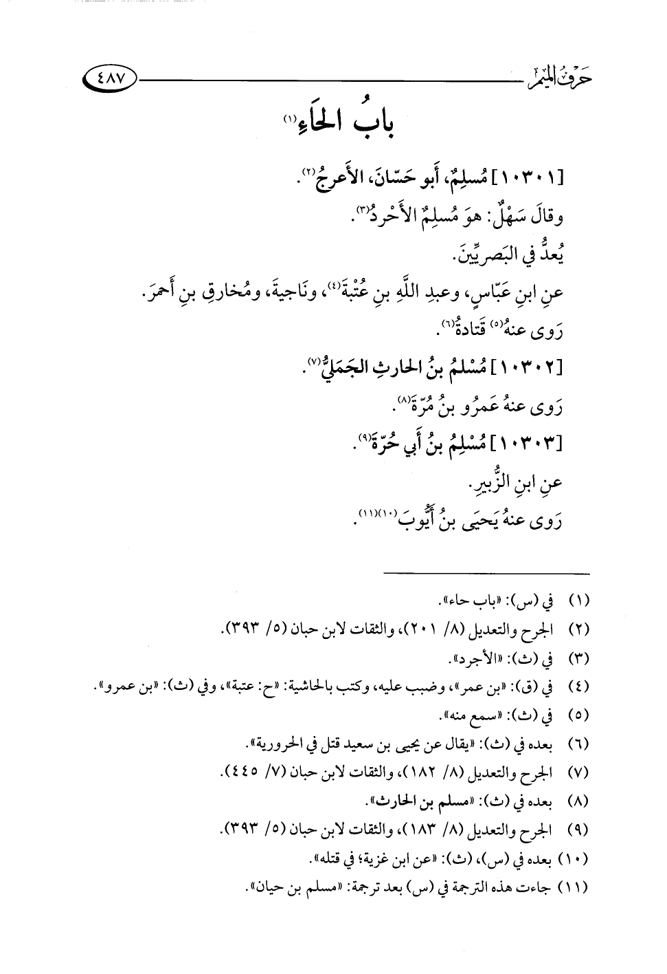 (¬١١) جاءت هذه الترجمة في (س) بعد ترجمة: "مسلم بن حيان".