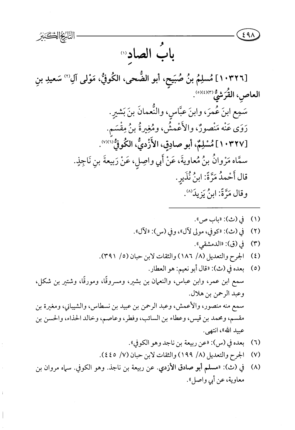 (¬٨) في (ث): "مسلم أبو صادق الأرْدي. عن ربيعة بن ناجذ. وهو الكوفي. سماه مروان بن معاوية، عن أبي واصل".