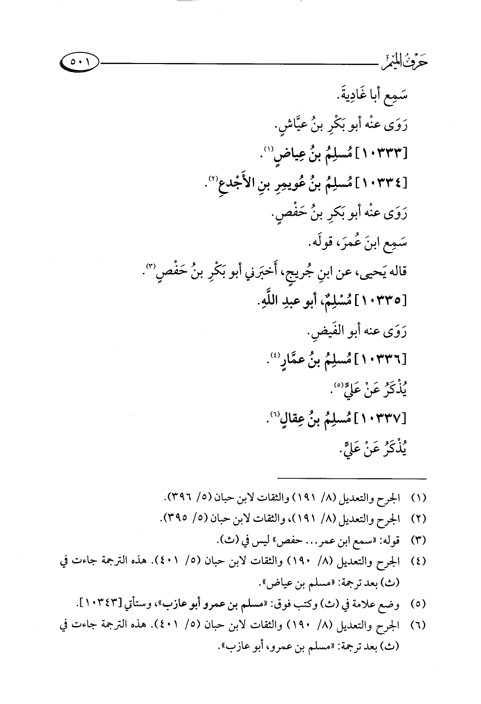 (¬٤) الجرح والتعديل (٨/ ١٩٠) والثقات لابن حبان (٥/ ٤٠١). هذه الترجمة جاءت في (ث) بعد ترجمة: "مسلم بن عياض".