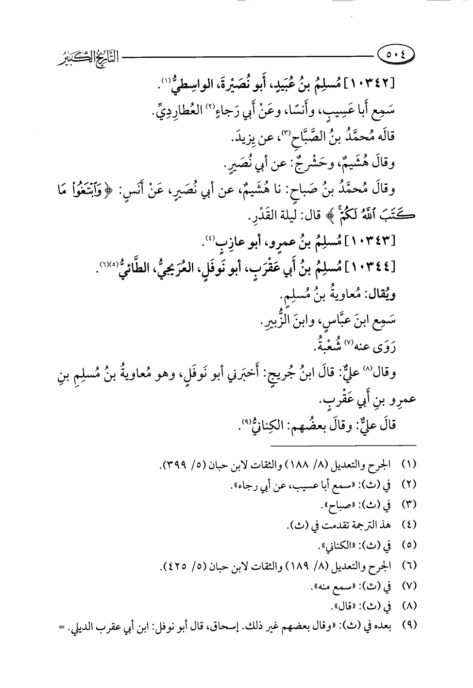 (¬٦) الجرح والتعديل (٨/ ١٨٩) والثقات لابن حبان (٥/ ٤٢٥).