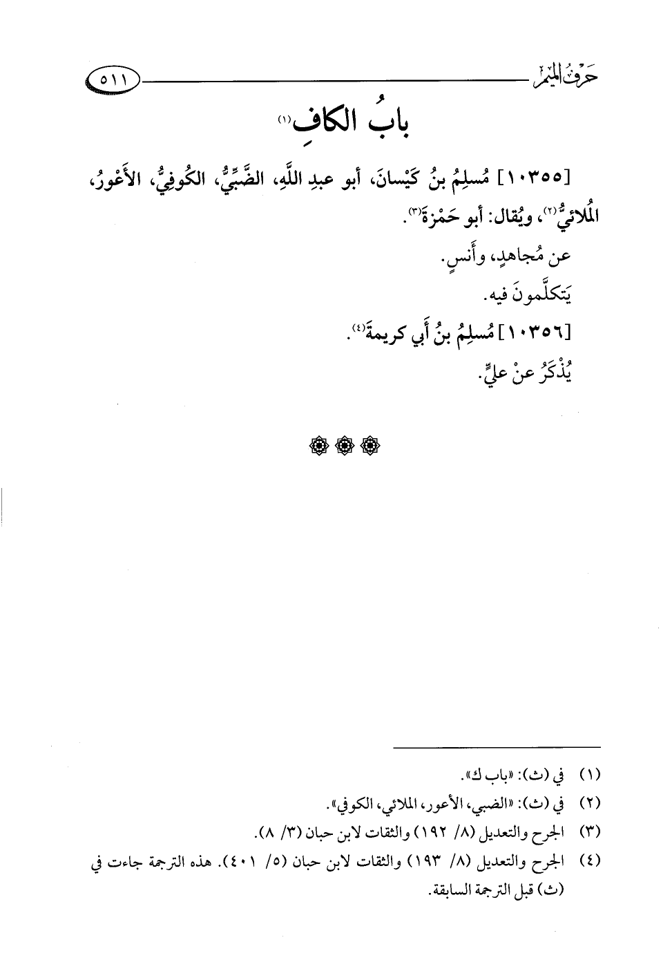(¬٢) في (ث): "الضبي، الأعور، الملائي، الكوفي".
