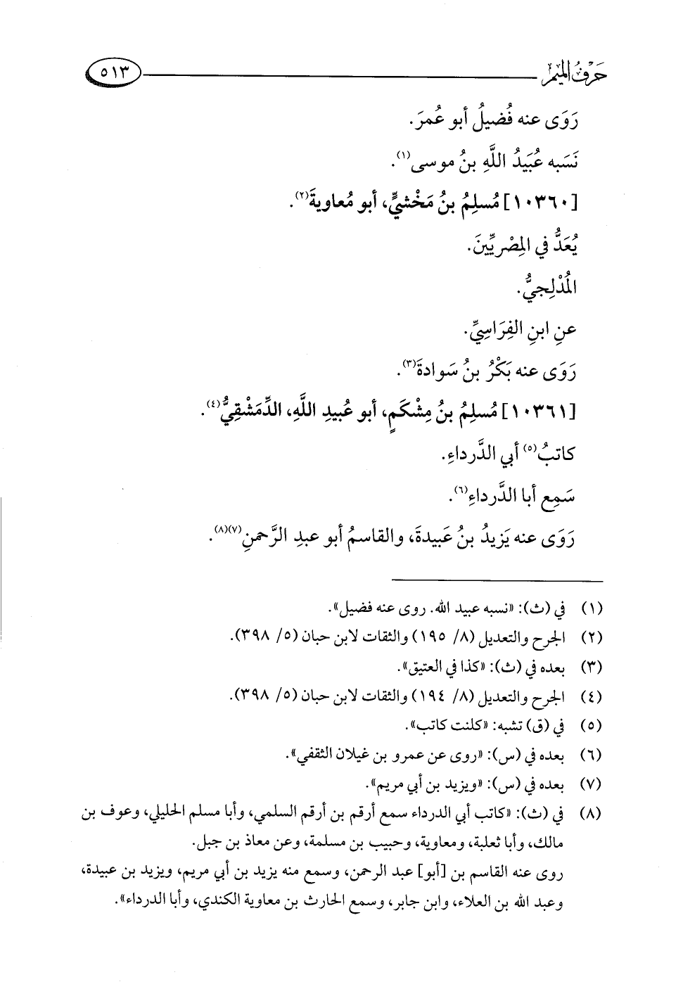 (¬٨) في (ث): "كاتب أبي الدرداء سمع أرقم بن أرقم السلمي، وأبا مسلم الحليلي، وعوف بن مالك، وأبا ثعلبة، ومعاوية، وحبيب بن مسلمة، وعن معاذ بن جبل.