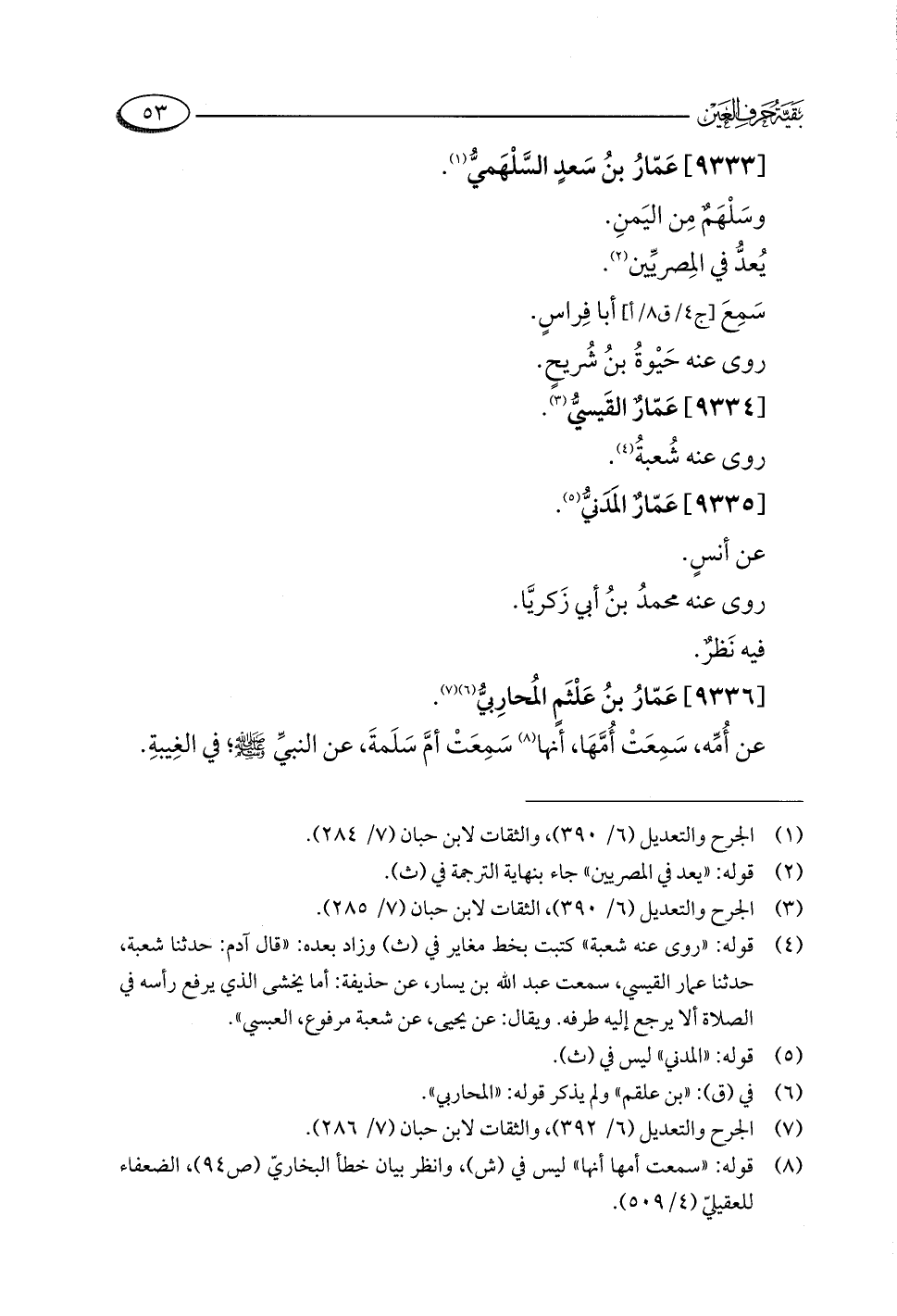 (¬٣) الجرح والتعديل (٦/ ٣٩٠)، الثقات لابن حبان (٧/ ٢٨٥).