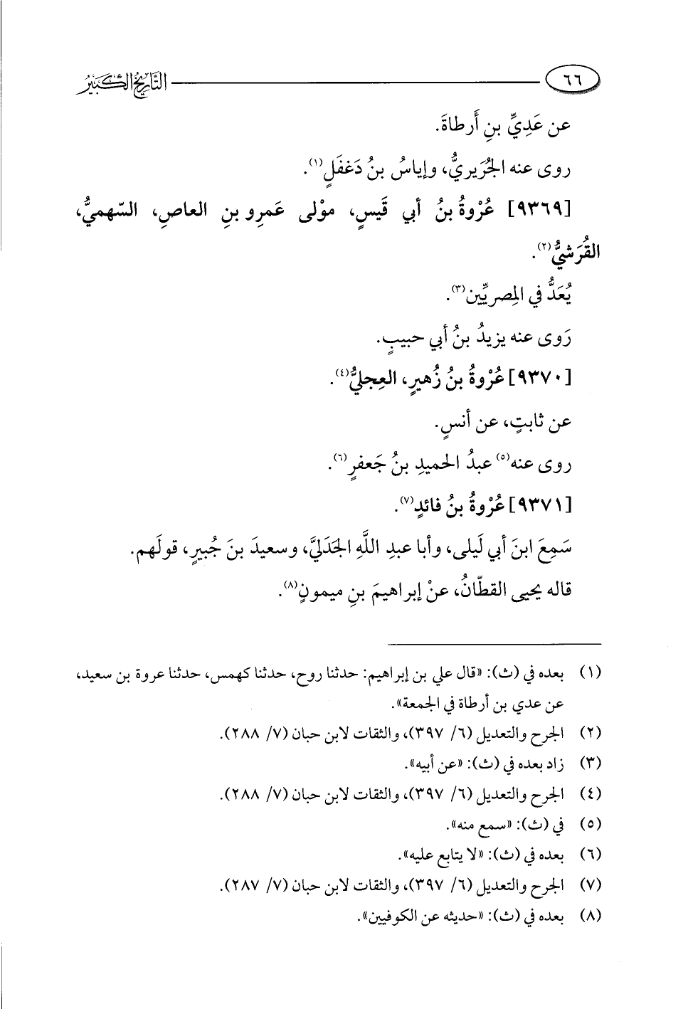 (¬٧) الجرح والتعديل (٦/ ٣٩٧)، والثقات لابن حبان (٧/ ٢٨٧).