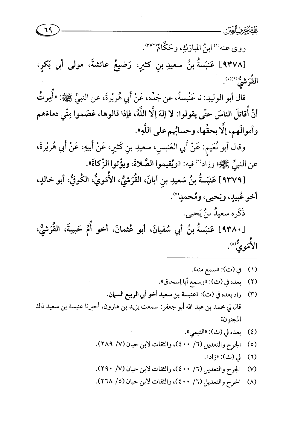 (¬٣) زاد بعده في (ث): "عنبسة بن سعيد أخو أبي الربيع السمان.