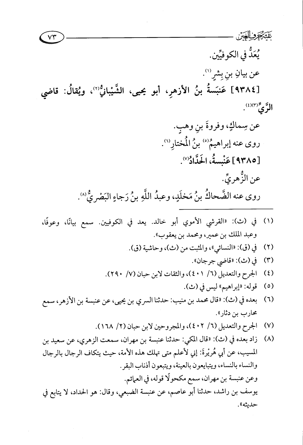 [٩٣٨٤] عَنبَسةُ بنُ الأزهرِ، أبو يحيى، الشَّيْبانيُّ (¬٢)، ويُقالُ: قاضي الرَّيِّ (¬٣) (¬٤).