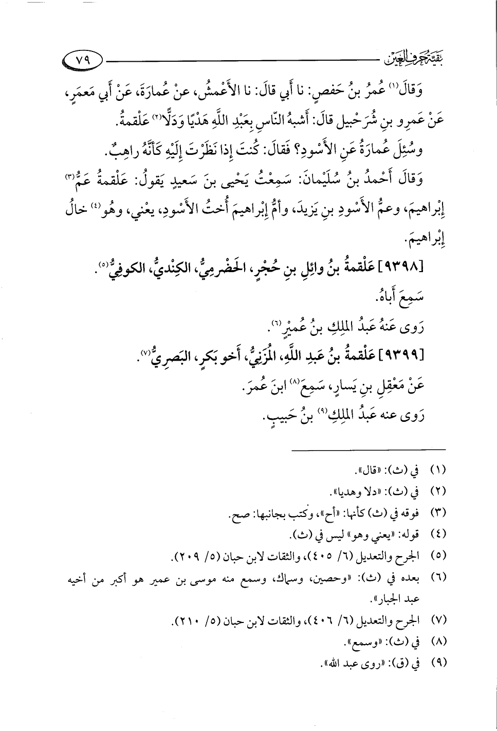 (¬٥) الجرح والتعديل (٦/ ٤٠٥)، والثقات لابن حبان (٥/ ٢٠٩).