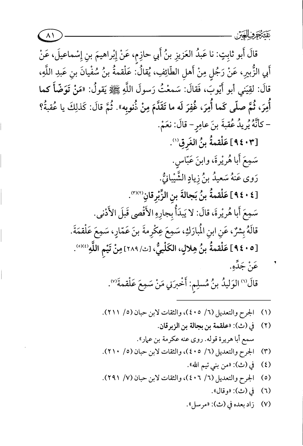 (¬٥) الجرح والتعديل (٦/ ٤٠٦)، والثقات لابن حبان (٧/ ٢٩١).