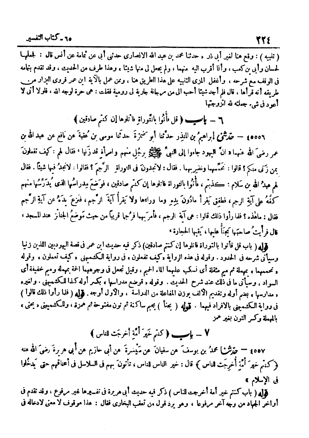 (قَوْلُهُ بَابُ قُلْ فَأْتُوا بِالتَّوْرَاةِ فَاتْلُوهَا إِنْ كُنْتُمْ صَادِقِينَ)