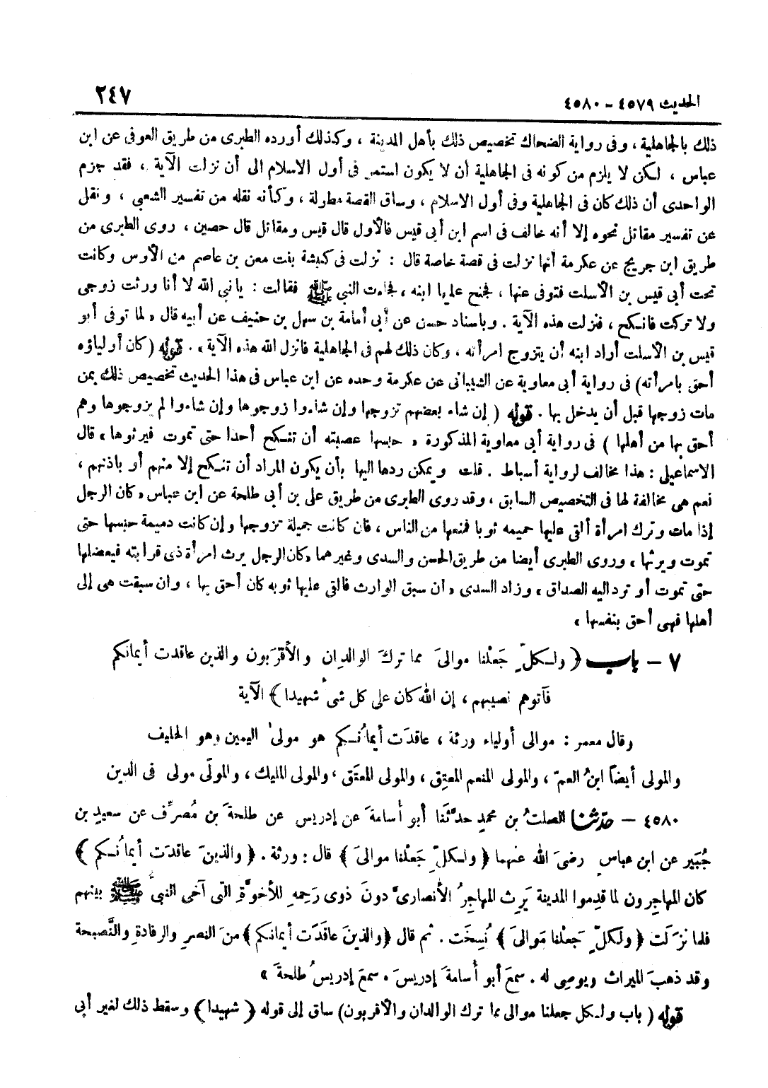 (قَوْلُهُ بَابُ وَلِكُلٍّ جَعَلْنَا مَوَالِيَ مِمَّا تَرَكَ الْوَالِدَان وَالْأَقْرَبُونَ)