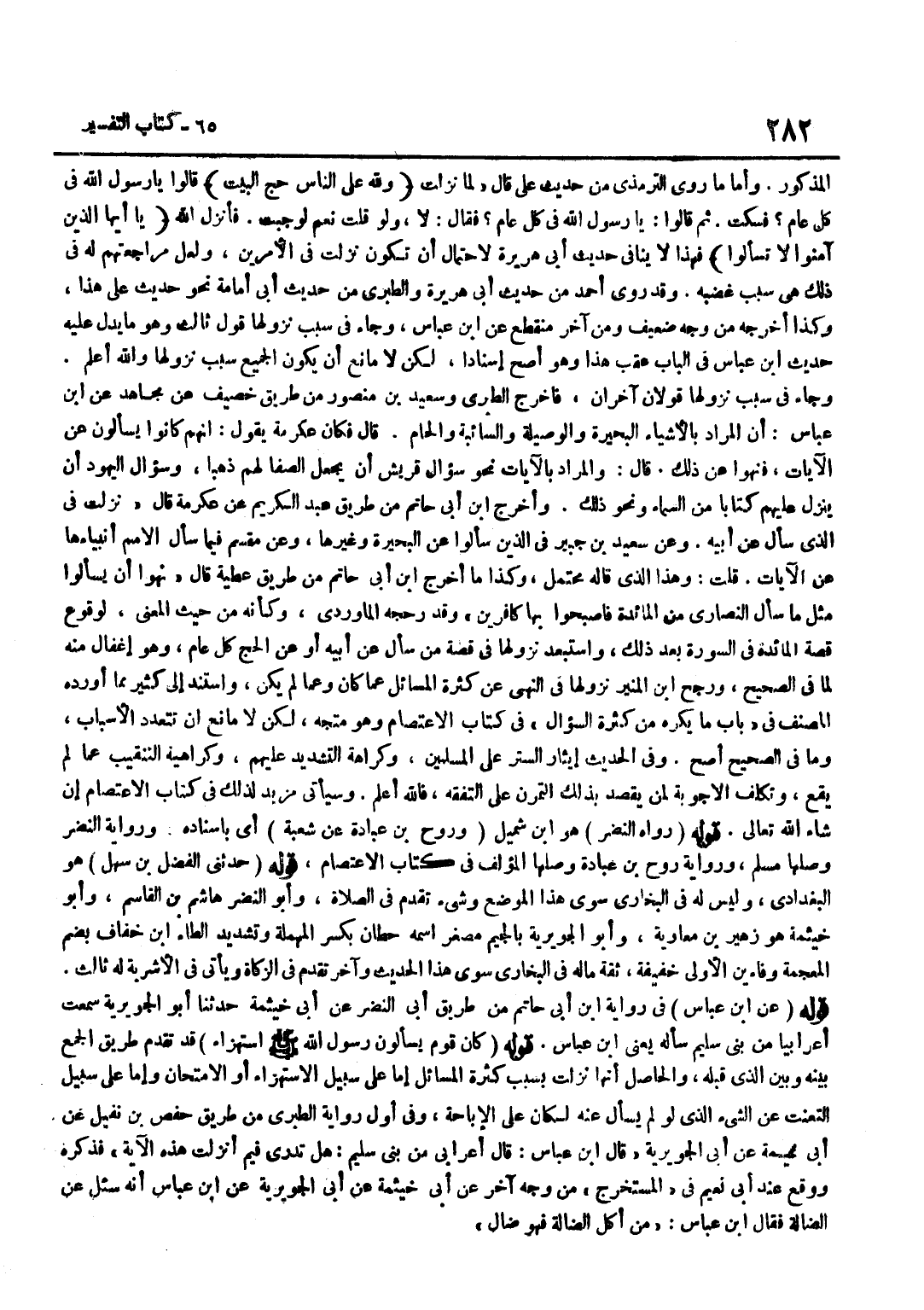 [4622] قَوْلُهُ حَدَّثَنِي الْفَضْلُ بْنُ سَهْلٍ هُوَ الْبَغْدَادِيُّ وَلَيْسَ لَهُ فِي الْبُخَارِيِّ سِوَى هَذَا الْمَوْضِعِ وَشَيْءٌ تَقَدَّمَ فِي الصَّلَاةِ وَأَبُو النَّضْرِ هَاشِمُ بْنُ الْقَاسِمِ وَأَبُو خَيْثَمَةَ هُوَ زُهَيْرُ بْنُ مُعَاوِيَةَ وَأَبُو الْجُوَيْرِيَةِ بِالْجِيمِ مُصَغَّرٌ اسْمُهُ حِطَّانُ بِكَسْر الْمُهْملَة وَتَشْديد الطَّاء بن خُفَافٍ بِضَمِّ الْمُعْجَمَةِ وَفَاءَيْنِ الْأُولَى خَفِيفَةٌ ثِقَةٌ مَالَهُ فِي الْبُخَارِيِّ سِوَى هَذَا الْحَدِيثِ وَآخَرَ تَقَدَّمَ فِي الزَّكَاةِ وَيَأْتِي فِي الْأَشْرِبَةِ لَهُ ثَالِثٌ قَوْله عَن بن عَبَّاس فِي رِوَايَة بن أَبِي حَاتِمٍ مِنْ طَرِيقِ أَبِي النَّضْرِ عَنْ أَبِي خَيْثَمَةَ حَدَّثَنَا أَبُو الْجُوَيْرِيَةِ سَمِعْتُ أَعْرَابِيًّا من بني سليم سَأَلَهُ يَعْنِي بن عَبَّاسٍ قَوْلُهُ كَانَ قَوْمٌ يَسْأَلُونَ رَسُولَ اللَّهِ صَلَّى اللَّهُ عَلَيْهِ وَسَلَّمَ اسْتِهْزَاءً قَدْ تَقَدَّمَ طَرِيقُ الْجَمْعِ بَيْنَهُ وَبَيْنَ الَّذِي قَبْلَهُ وَالْحَاصِلُ أَنَّهَا نَزَلَتْ بِسَبَبِ كَثْرَةِ الْمَسَائِلِ إِمَّا عَلَى سَبِيلِ الِاسْتِهْزَاءِ أَوِ الِامْتِحَانِ وَإِمَّا عَلَى سَبِيلِ التعنت عَن الشَّيْء الَّذِي لَو لم يسْأَل عَنْهُ لَكَانَ عَلَى الْإِبَاحَةِ وَفِي أَوَّلِ رِوَايَةِ الطَّبَرِيِّ مِنْ طَرِيقِ حَفْصِ بْنِ نُفَيْلٍ عَنْ أبي خَيْثَمَة عَن أبي الجويرية قَالَ بن عَبَّاسٍ قَالَ أَعْرَابِيٌّ مِنْ بَنِي سُلَيْمٍ هَلْ تَدْرِي فِيمَ أُنْزِلَتْ هَذِهِ الْآيَةُ فَذَكَرَهُ وَوَقَعَ عِنْدَ أَبِي نُعَيْمٍ فِي الْمُسْتَخْرَجِ مِنْ وَجْهٍ آخَرَ عَنْ أَبِي خَيْثَمَةَ عَنْ أَبِي الْجُوَيْرِيَةِ عَن بن عَبَّاس أَنه سُئِلَ عَن الضَّالة فَقَالَ بن عَبَّاس من أكل الضَّالة فَهُوَ ضال