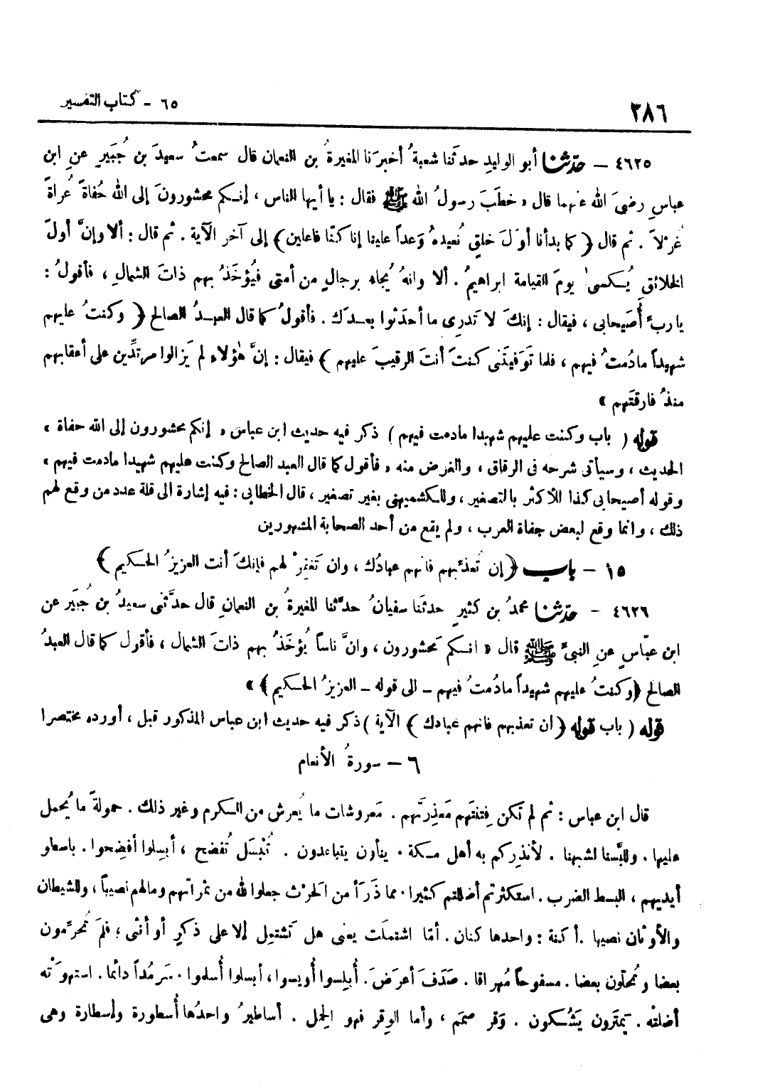 ذكر فِيهِ حَدِيث بن عَبَّاسٍ إِنَّكُمْ مَحْشُورُونَ إِلَى اللَّهِ حُفَاةً الْحَدِيثَ وَسَيَأْتِي شَرْحُهُ فِي الرِّقَاقِ وَالْغَرَضُ مِنْهُ فَأَقُولُ كَمَا قَالَ الْعَبْدُ الصَّالِحُ وَكُنْتُ عَلَيْهِمْ شَهِيدًا مادمت فِيهِمْ وَقَوْلُهُ