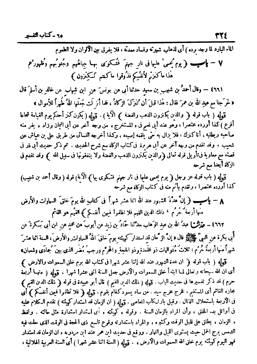 أَيْ إِنَّ اللَّهَ سُبْحَانَهُ وَتَعَالَى لَمَّا ابْتَدَأَ خَلْقَ السَّمَاوَاتِ وَالْأَرْضِ جَعَلَ السَّنَةَ اثَّنَى عَشَرَ شهرا قَوْله مِنْهَا أَرْبَعَة حرم قَدْ ذُكِرَ تَفْسِيرُهَا فِي حَدِيثِ الْبَابِ قَوْلُهُ ذَلِك الدّين الْقيم قَالَ أَبُو عُبَيْدَةَ فِي قَوْلِهِ ذَلِكَ الدِّينُ الْقيم مَجَازُهُ الْقَائِمُ أَيِ الْمُسْتَقِيمُ فَخَرَجَ مَخْرَجَ سَيِّدٍ مِنْ سَادَ يَسُودُ كَقَامَ يَقُومُ قَوْلُهُ فَلَا تظلموا فِيهِنَّ أَنفسكُم أَيْ فِي الْأَرْبَعَةِ بِاسْتِحْلَالِ الْقِتَالِ وَقِيلَ بِارْتِكَابِ الْمَعَاصِي