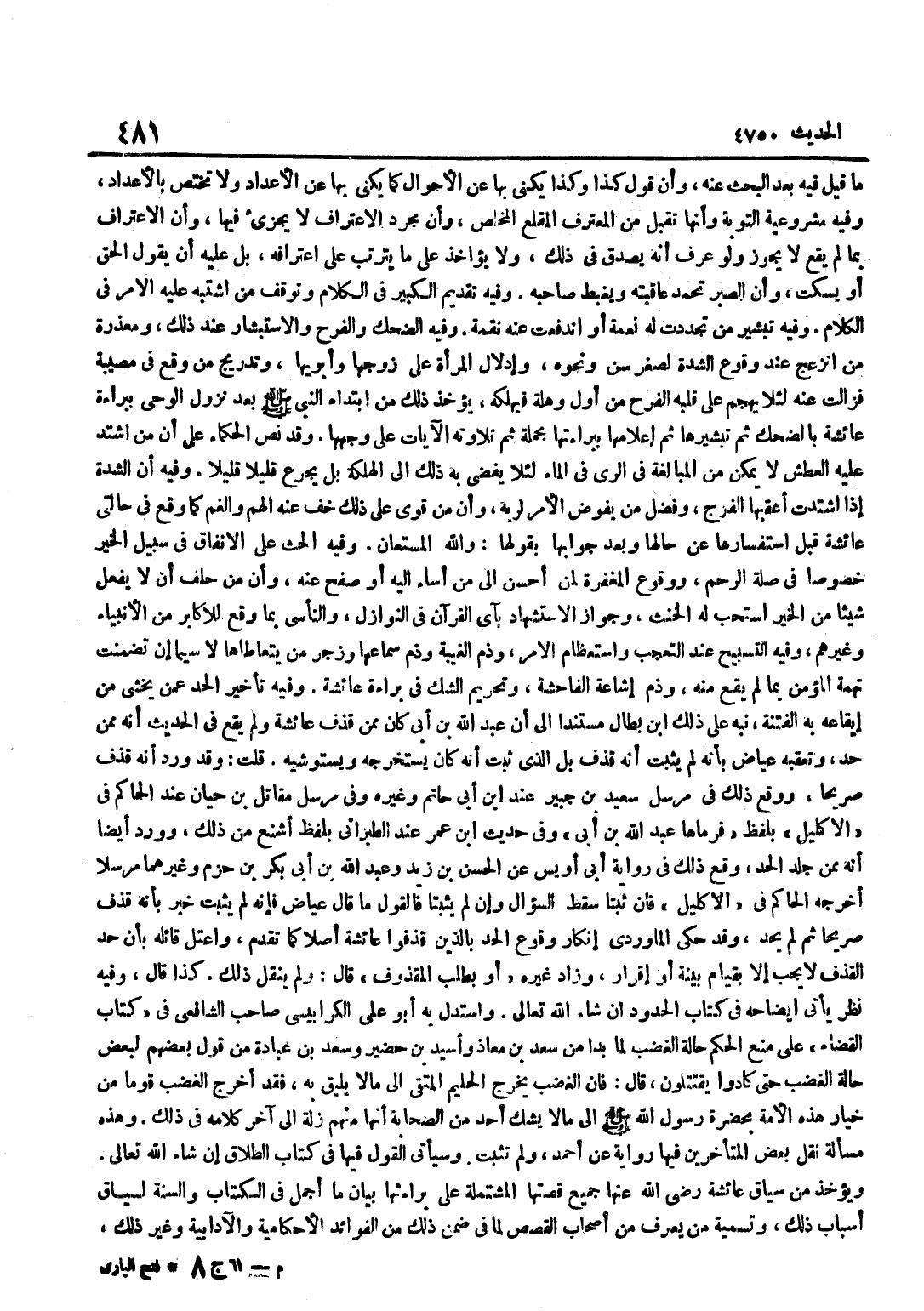 مَا قِيلَ فِيهِ بَعْدَ الْبَحْثِ عَنْهُ وَأَنَّ قَوْلَ كَذَا وَكَذَا يُكَنَّى بِهَا عَنِ الْأَحْوَالِ كَمَا يُكَنَّى بِهَا عَنِ الْأَعْدَادِ وَلَا تَخْتَصُّ بِالْأَعْدَادِ وَفِيهِ مَشْرُوعِيَّةُ التَّوْبَةِ وَأَنَّهَا تُقْبَلُ مِنَ الْمُعْتَرِفِ الْمُقْلِعِ الْمُخْلِصِ وَأَنَّ مُجَرَّدَ الِاعْتِرَافِ لَا يُجْزِئُ فِيهَا وَأَنَّ الِاعْتِرَافَ بِمَا لَمْ يَقَعْ لَا يَجُوزُ وَلَوْ عُرِفَ أَنَّهُ يَصْدُقُ فِي ذَلِكَ وَلَا يُؤَاخَذُ عَلَى مَا يَتَرَتَّبُ عَلَى اعْتِرَافِهِ بَلْ عَلَيْهِ أَنْ يَقُولَ الْحَقَّ أَوْ يسكت وَأَن الصَّبْر يحمد عَاقِبَتُهُ وَيُغْبَطُ صَاحِبُهُ وَفِيهِ تَقْدِيمُ الْكَبِيرِ فِي الْكَلَامِ وَتَوَقُّفُ مَنِ اشْتَبَهَ عَلَيْهِ الْأَمْرَ فِي الْكَلَامِ وَفِيهِ تَبْشِيرُ مَنْ تَجَدَّدَتْ لَهُ نِعْمَةٌ أَوِ انْدَفَعَتْ عَنْهُ نِقْمَةٌ وَفِيهِ الضَّحِكُ وَالْفَرَحُ وَالِاسْتِبْشَارُ عِنْدَ ذَلِكَ وَمَعْذِرَةُ مَنِ انْزَعَجَ عِنْدَ وُقُوعِ الشِّدَّةِ لِصِغَرِ سِنٍّ وَنَحْوِهِ وَإِدْلَالُ الْمَرْأَةِ عَلَى زَوْجِهَا وَأَبَوَيْهَا وَتَدْرِيجُ مَنْ وَقَعَ فِي مُصِيبَةٍ فَزَالَتْ عَنْهُ لِئَلَّا يَهْجُمُ عَلَى قَلْبِهِ الْفَرَحُ مِنْ أَوَّلِ وَهْلَةٍ فَيُهْلِكُهُ يُؤْخَذُ ذَلِكَ مِنِ ابْتِدَاءِ النَّبِيِّ صَلَّى اللَّهُ عَلَيْهِ وَسَلَّمَ بَعْدَ نُزُولِ الْوَحْيِ بِبَرَاءَةِ عَائِشَةَ بِالضَّحِكِ ثُمَّ تَبْشِيرِهَا ثُمَّ إِعْلَامِهَا بِبَرَاءَتِهَا مُجْمَلَةً ثُمَّ تِلَاوَتِهِ الْآيَاتِ عَلَى وَجْهِهَا وَقَدْ نَصَّ الْحُكَمَاءُ عَلَى أَنَّ مَنِ اشْتَدَّ عَلَيْهِ الْعَطَشُ لَا يُمَكَّنُ مِنَ الْمُبَالَغَةِ فِي الرَّيِّ فِي الْمَاءِ لِئَلَّا يُفْضِي بِهِ ذَلِكَ إِلَى الْهَلَكَةِ بَلْ يُجَرَّعُ قَلِيلًا قَلِيلًا وَفِيهِ أَنَّ الشِّدَّةَ إِذَا اشْتَدَّتْ أَعْقَبَهَا الْفَرَجُ وَفُضِّلَ مَنْ يُفَوِّضُ الْأَمْرَ لِرَبِّهِ وَأَنَّ مَنْ قَوِيَ عَلَى ذَلِكَ خَفَّ عَنْهُ الْهَمُّ وَالْغَمُّ كَمَا وَقَعَ فِي حَالَتَيْ عَائِشَةَ قَبْلَ اسْتِفْسَارِهَا عَنْ حَالِهَا وَبَعْدَ جَوَابِهَا بِقَوْلِهَا وَاللَّهُ الْمُسْتَعَانُ وَفِيهِ الْحَثُّ عَلَى الْإِنْفَاقِ فِي سَبِيلِ الْخَيْرِ خُصُوصًا فِي صِلَةِ الرَّحِمِ وَوُقُوعِ الْمَغْفِرَةِ لِمَنْ أَحْسَنَ إِلَى مَنْ أَسَاءَ إِلَيْهِ أَوْ صَفَحَ عَنْهُ وَأَنَّ مَنْ حَلَفَ أَنْ لَا يَفْعَلَ شَيْئًا مِنَ الْخَيْرِ اسْتُحِبَّ لَهُ الخنث وَجَوَازُ الِاسْتِشْهَادِ بِآيِ الْقُرْآنِ فِي النَّوَازِلِ وَالتَّأَسِّي بِمَا وَقَعَ لِلْأَكَابِرِ مِنَ الْأَنْبِيَاءِ وَغَيْرِهِمْ وَفِيهِ التَّسْبِيحُ عِنْدَ التَّعَجُّبِ وَاسْتِعْظَامِ الْأَمْرِ وَذَمُّ الْغِيبَةِ وَذَمُّ سَمَاعِهَا وَزَجْرُ مَنْ يَتَعَاطَاهَا لَا سِيَّمَا إِنْ تَضَمَّنَتْ تُهْمَةُ الْمُؤْمِنِ بِمَا لَمْ يَقَعْ مِنْهُ وَذَمُّ إِشَاعَةُ الْفَاحِشَةِ وَتَحْرِيمِ الشَّكِّ فِي بَرَاءَةِ عَائِشَةَ وَفِيهِ تَأْخِيرُ الْحَدِّ عَمَّنْ يُخْشَى مِنْ إِيقَاعِهِ بِهِ الْفِتْنَةُ نَبَّهَ عَلَى ذَلِكَ بن بَطَّالٍ مُسْتَنِدًا إِلَى أَنَّ عَبْدَ اللَّهِ بْنَ أُبَيٍّ كَانَ مِمَّنْ قَذَفَ عَائِشَةَ وَلَمْ يَقَعْ فِي الْحَدِيثِ أَنَّهُ مِمَّنْ حُدَّ وَتَعَقَّبَهُ عِيَاضٌ بِأَنَّهُ لَمْ يَثْبُتْ أَنَّهُ قَذَفَ بَلِ الَّذِي ثَبَتَ أَنَّهُ كَانَ يَسْتَخْرِجُهُ وَيَسْتَوْشِيهُ قُلْتُ وَقَدْ وَرَدَ أَنَّهُ قَذَفَ صَرِيحًا وَوَقَعَ ذَلِكَ فِي مُرْسل سعيد بن جُبَير عِنْد بن أَبِي حَاتِمٍ وَغَيْرِهِ وَفِي مُرْسَلِ مُقَاتِلِ بْنِ حَيَّانَ عِنْدَ الْحَاكِمِ فِي الْإِكْلِيلِ بِلَفْظِ فَرَمَاهَا عبد الله بن أبي وَفِي حَدِيث بن عُمَرَ عِنْدَ الطَّبَرَانِيِّ بِلَفْظٍ أَشْنَعُ م