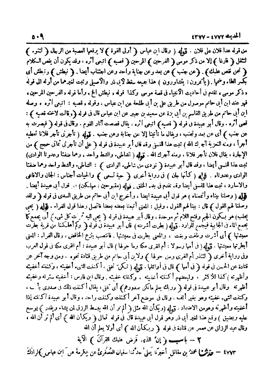 مِنْ قَوْلِهِ عَدَا فُلَانٌ عَلَى فُلَانٍ قَوْلُهُ وَقَالَ بن عَبَّاسٍ أُولِي الْقُوَّةِ لَا يَرْفَعُهَا الْعُصْبَةُ مِنَ الرِّجَالِ لَتَنُوءُ لَتَثْقُلُ فَارِغًا إِلَّا مِنْ ذِكْرِ مُوسَى الْفَرِحِينَ الْمَرِحِينَ قُصِّيهِ اتَّبِعِي أَثَرَهُ وَقَدْ يَكُونُ أَنْ يَقُصَّ الْكَلَامَ نَحْنُ نَقُصُّ عَلَيْكَ عَنْ جُنُبٍ عَنْ بُعْدٍ وَعَنْ جَنَابَةٍ وَاحِدٌ وَعَنِ اجْتِنَابٍ أَيْضًا نَبْطِشُ وَنَبْطُشُ أَيْ بِكَسْرِ الطَّاءِ وَضَمِّهَا يَأْتَمِرُونَ يَتَشَاوَرُونَ هَذَا جَمِيعُهُ سَقَطَ لِأَبِي ذَرٍّ وَالْأَصِيلِيِّ وَثَبَتَ لِغَيْرِهِمَا مِنْ أَوَّلِهِ إِلَى قَوْلِهِ ذِكْرُ مُوسَى تَقَدَّمَ فِي أَحَادِيثِ الْأَنْبِيَاءِ فِي قِصَّةِ مُوسَى وَكَذَا قَوْلُهُ نَبْطِشُ إِلَخْ وَأَمَّا قَوْلُهُ الْفَرِحِينَ الْمَرِحِينَ فَهُوَ عِنْدَ بن أَبِي حَاتِمٍ مَوْصُولٌ مِنْ طَرِيقِ عَلِيِّ بْنِ أَبِي طَلْحَةَ عَنِ بن عَبَّاس وَقَوله قصيه اتبعي أَثَره وَصله بن أَبِي حَاتِمٍ مِنْ طَرِيقِ الْقَاسِمِ بْنِ أَبِي بزَّة عَن سعيد بن جُبَير عَن بن عَبَّاسٍ قَالَ فِي قَوْلِهِ وَقَالَتْ لِأُخْتِهِ قُصِّيهِ قُصِّي أَثَرَهُ وَقَالَ أَبُو عُبَيْدَةَ فِي قَوْلِهِ قُصِّيهِ اتَّبِعِي أَثَرَهُ يُقَالُ قَصَصْتُ آثَارَ الْقَوْمِ وَقَالَ فِي قَوْلِهِ فَبَصُرَتْ بِهِ عَنْ جُنُبٍ أَيْ عَنْ بُعْدٍ وَتَجَنُّبٍ وَيُقَالُ مَا تَأْتِينَا إِلَّا عَنْ جَنَابَةٍ وَعَنْ جُنُبٍ قَوْلُهُ تَأْجُرُنِي تَأْجُرُ فُلَانًا تُعْطِيهِ أَجْرًا وَمِنْهُ التَّعْزِيَةُ آجَرَكَ اللَّهُ ثَبَتَ هَذَا لِلنَّسَفِيِّ وَقَدْ قَالَ أَبُو عُبَيْدَةَ فِي قَوْلِهِ عَلَى أَنْ تَأْجُرَنِي ثَمَانِيَ حجج مِنَ الْإِجَارَةِ يُقَالُ فُلَانٌ تَأَجَّرَ فُلَانًا وَمِنْهُ آجَرَكَ اللَّهُ قَوْلُهُ الشَّاطِئُ وَالشَّطُّ وَاحِدٌ وَهُمَا ضَفَّتَا وَعُدْوَتَا الْوَادِي ثَبَتَ هَذَا لِلنَّسَفِيِّ أَيْضًا وَقَدْ قَالَ أَبُو عُبَيْدَةَ نُودِيَ مِنْ شَاطِئِ الْوَادي الشَّاطِئُ وَالشَّطُّ وَاحِدٌ وَهُمَا ضَفَّتَا الْوَادِي وَعُدْوَتَاهُ قَوْلُهُ كَأَنَّهَا جَانٌّ فِي رِوَايَةٍ أُخْرَى حَيَّةٌ تَسْعَى وَالْحَيَّاتُ أَجْنَاسٌ الْجَانُّ وَالْأَفَاعِي وَالْأَسَاوِدُ ثَبَتَ هَذَا لِلنَّسَفِيِّ أَيْضًا وَقَدْ تَقَدَّمَ فِي بَدْءِ الْخَلْقِ قَوْلُهُ مَقْبُوحِينَ مُهْلَكِينَ هُوَ قَوْلُ أَبِي عُبَيْدَة أَيْضا قَوْله وصلنا بَيناهُ وأتمناه هُوَ قَول أبي عُبَيْدَة أَيْضا وَأخرج بن أَبِي حَاتِمٍ مِنْ طَرِيقِ السُّدِّيِّ فِي قَوْلِهِ وَلَقَد وصلنا لَهُم القَوْل قَالَ بَيَّنَّا لَهُمُ الْقَوْلَ وَقِيلَ الْمَعْنَى أَتْبَعْنَا بَعْضَهُ بَعْضًا فَاتَّصَلَ وَهَذَا قَوْلُ الْفَرَّاءِ قَوْلُهُ يُجْبَى يُجْلَبُ هُوَ بِسُكُونِ الْجِيمِ وَفَتْحِ اللَّامِ ثُمَّ مُوَحَّدَةٌ وَقَالَ أَبُو عُبَيْدَةُ فِي قَوْلِهِ يجبي إِلَيْهِ ثَمَرَات كل شَيْء أَيْ يُجْمَعُ كَمَا يُجْمَعُ الْمَاءُ فِي الْجَابِيَةِ فَيُجْمَعُ لِلْوَارِدِ قَوْلُهُ بَطِرَتْ أَشِرَتْ قَالَ أَبُو عُبَيْدَةَ فِي قَوْلِهِ وَكَمْ أَهْلَكْنَا مِنْ قَرْيَةٍ بطرت معيشتها أَيْ أَشِرَتْ وَطَغَتْ وَبَغَتْ وَالْمَعْنَى بَطِرَتْ فِي مَعِيشَتِهَا فَانْتَصَبَ بِنَزْعِ الْخَافِضِ وَقَالَ الْفَرَّاءُ الْمَعْنَى أَبْطَرَتْهَا مَعِيشَتُهَا قَوْلُهُ فِي أُمِّهَا رَسُولًا أُمُّ الْقُرَى مَكَّةُ وَمَا حَوْلَهَا قَالَ أَبُو عُبَيْدَةَ أُمُّ الْقُرَى مَكَّةُ فِي قَوْلِ الْعَرَبِ وَفِي رِوَايَةٍ أُخْرَى لِتُنْذِرَ أُمَّ الْقُرَى وَمَنْ حَوْلَهَا وَلِابْنِ أَبِي حَاتِمٍ مِنْ طَرِيقِ قَتَادَةَ نَحْوُهُ وَمِنْ وَجْهٍ آخَرَ عَنْ قَتَادَةَ عَنِ الْحَسَنِ فِي قَوْلِهِ فِي أُمِّهَا قَالَ فِي أَوَائِلِهَا قَوْلُهُ تُكِنُّ تُخْف
