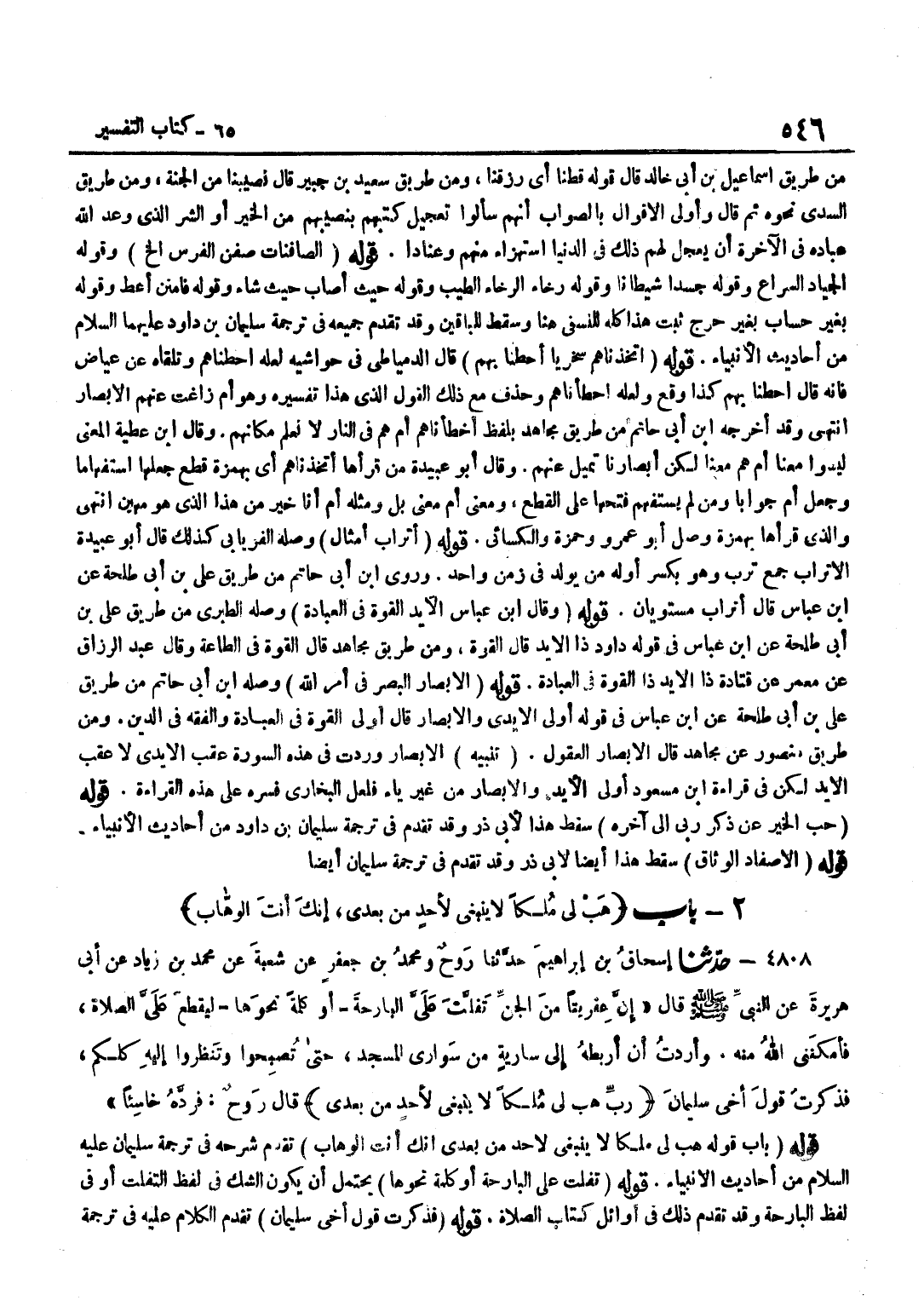 (قَوْلُهُ بَابُ قَوْلِهِ هَبْ لِي مُلْكًا لَا يَنْبَغِي لِأَحَدٍ مِنْ بَعْدِي إِنَّكَ أَنْتَ الْوَهَّابُ)