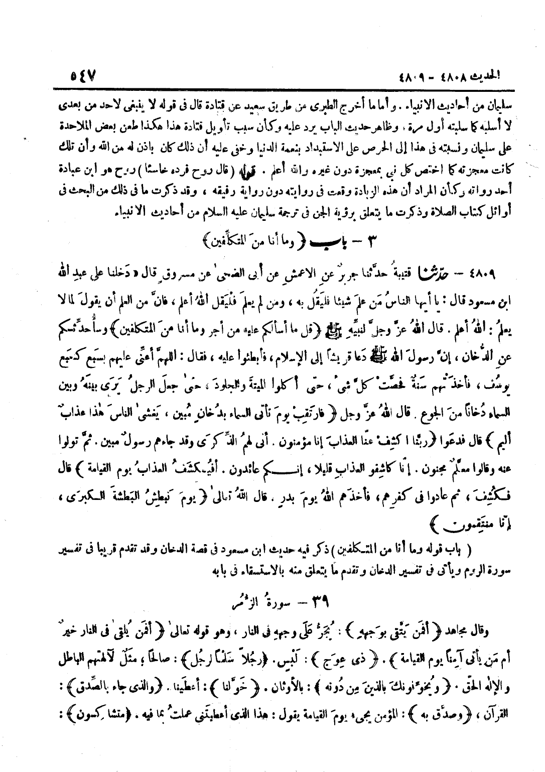 ذكر فِيهِ حَدِيث بن مَسْعُودٍ فِي قِصَّةِ الدُّخَانِ وَقَدْ تَقَدَّمَ قَرِيبًا فِي تَفْسِيرِ سُورَةِ الرُّومِ وَيَأْتِي فِي تَفْسِيرِ الدُّخَانِ وَتَقَدَّمَ مَا يَتَعَلَّقُ مِنْهُ بِالِاسْتِسْقَاءِ فِي بَابه