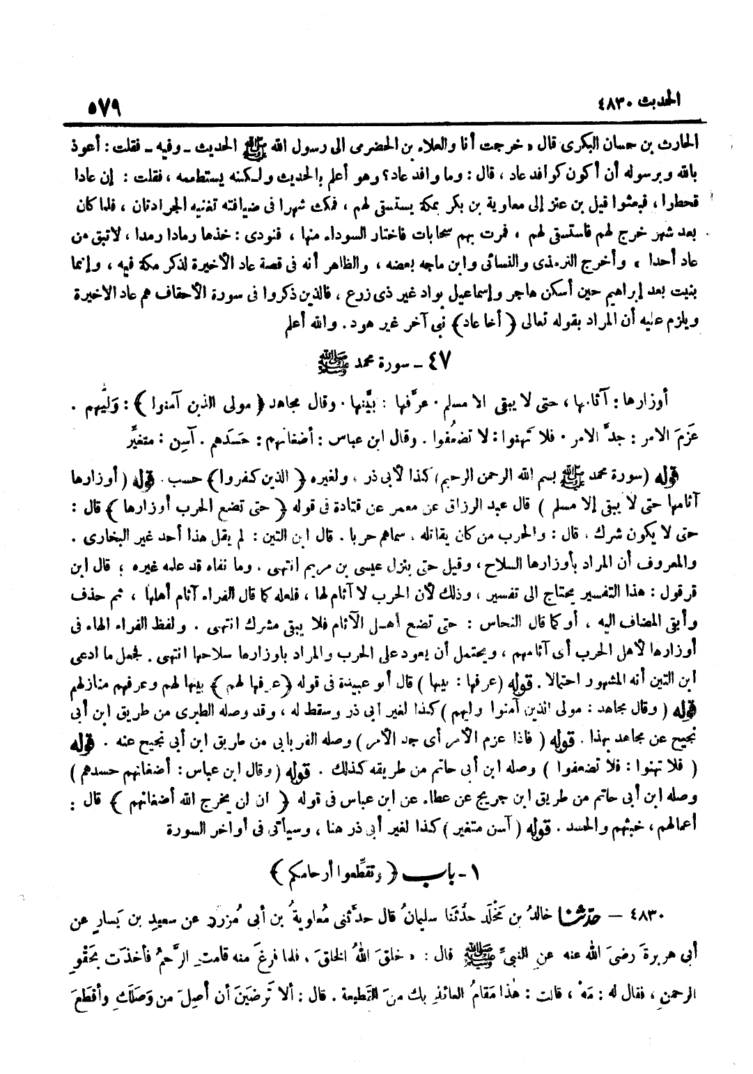 (قَوْلُهُ سُورَةُ مُحَمَّدٍ صَلَّى اللَّهُ عَلَيْهِ وَسَلَّمَ بِسْمِ اللَّهِ الرَّحْمَنِ الرَّحِيمِ)