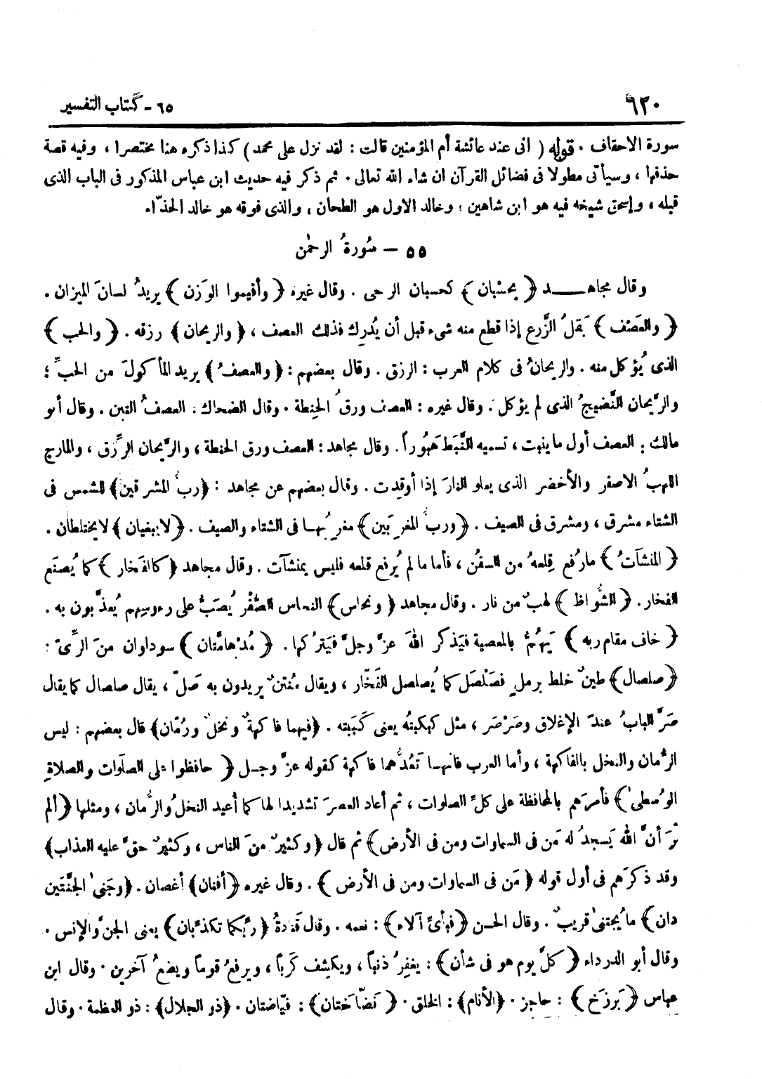 سُورَةِ الْأَحْقَافِ قَوْلُهُ إِنِّي عِنْدَ عَائِشَةَ أُمِّ الْمُؤْمِنِينَ قَالَتْ لَقَدْ نَزَلَ عَلَى مُحَمَّدٍ كَذَا ذَكَرَهُ هُنَا مُخْتَصَرًا وَفِيهِ قِصَّةٌ حَذَفَهَا وَسَيَأْتِي مُطَوَّلًا فِي فَضَائِلِ الْقُرْآنِ إِنْ شَاءَ اللَّهُ تَعَالَى ثمَّ ذكر فِيهِ حَدِيث بن عَبَّاسٍ الْمَذْكُورُ فِي الْبَابِ الَّذِي قَبْلَهُ وَإِسْحَاقُ شَيْخه فِيهِ هُوَ بن شَاهِينَ وَخَالِدٌ الْأَوَّلُ هُوَ الطَّحَّانُ وَالَّذِي فَوْقَهُ هُوَ خَالِد الْحذاء