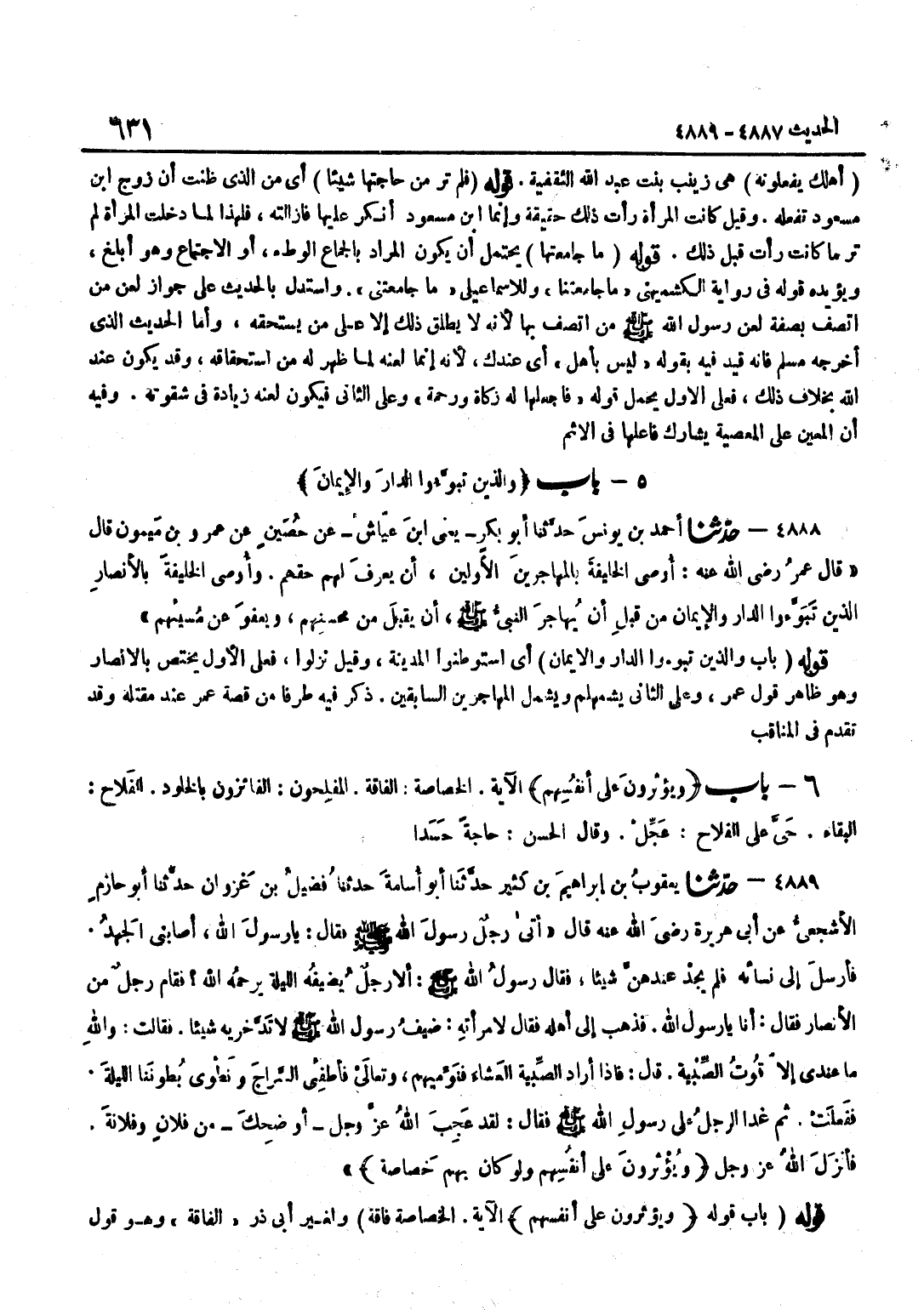 أَيِ اسْتَوْطَنُوا الْمَدِينَةَ وَقِيلَ نَزَلُوا فَعَلَى الْأَوَّلِ يَخْتَصُّ بِالْأَنْصَارِ وَهُوَ ظَاهِرُ قَوْلِ عُمَرَ وَعَلَى الثَّانِي يَشْمَلُهُمْ وَيَشْمَلُ الْمُهَاجِرِينَ السَّابِقِينَ ذَكَرَ فِيهِ طَرَفًا مِنْ قِصَّةِ عُمَرَ عِنْدَ مَقْتَلِهِ وَقَدْ تَقَدَّمَ فِي المناقب قَوْله بَاب قَوْله ويؤثرون على أنفسهم الْآيَة الْخَصَاصَة فاقة وَلِغَيْرِ أَبِي ذَرٍّ الْفَاقَةُ وَهُوَ قَوْلُ