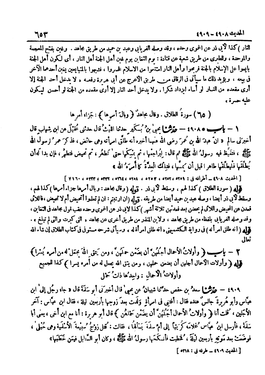 [4908] قَوْلُهُ أَنَّهُ طَلَّقَ امْرَأَتَهُ فِي رِوَايَةِ الْكُشْمِيهَنِيِّ أَنَّهُ طَلَّقَ امْرَأَةً لَهُ وَسَيَأْتِي شَرْحُهُ مُسْتَوْفًى فِي كِتَابِ الطَّلَاقِ إِنْ شَاءَ اللَّهُ تَعَالَى